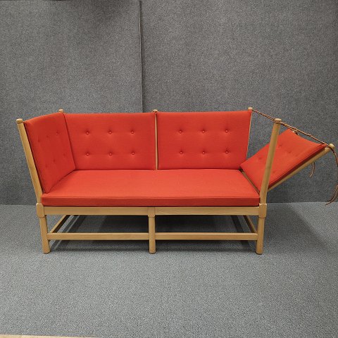 2 personers Tremmesofa af bøg og med hynder i en rød/orange farve. Nr. 08-121