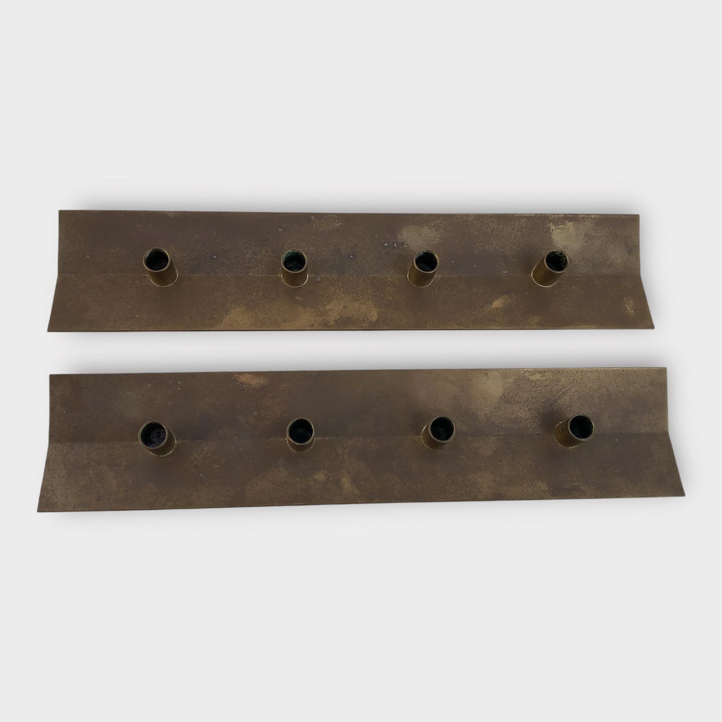 Skultuna 1607, Sweden, Massive Brass candlesticks for 4 candles, No. 69, design: Pierre Forsell, appears patinated/unpolished, length 34.5 cm