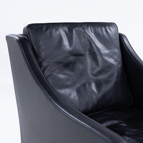 BM 2207 - Lænestol i originalt, sort læder med ben i lys eg.