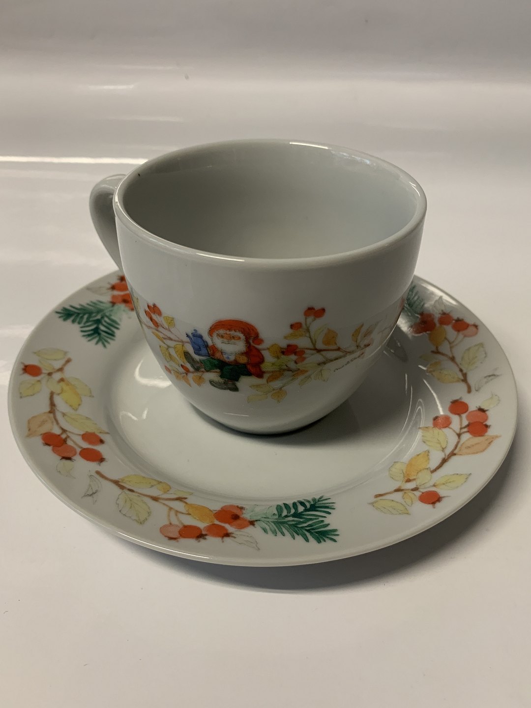 Mads Stage, Christmas frame with elf motif, Coffee cup with saucer.