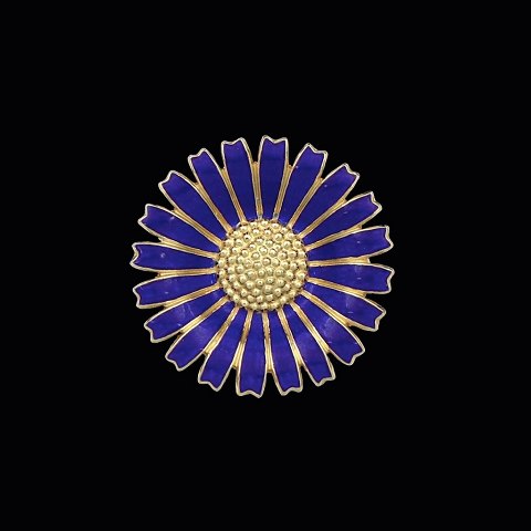 A. Michelsen. Gilded Sterling Silver Daisy Brooch with Royal Blue Enamel - 33mm.