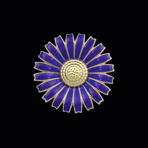 Georg Jensen. Sterling Silver Daisy Brooch with Royal Blue Enamel. 43mm.