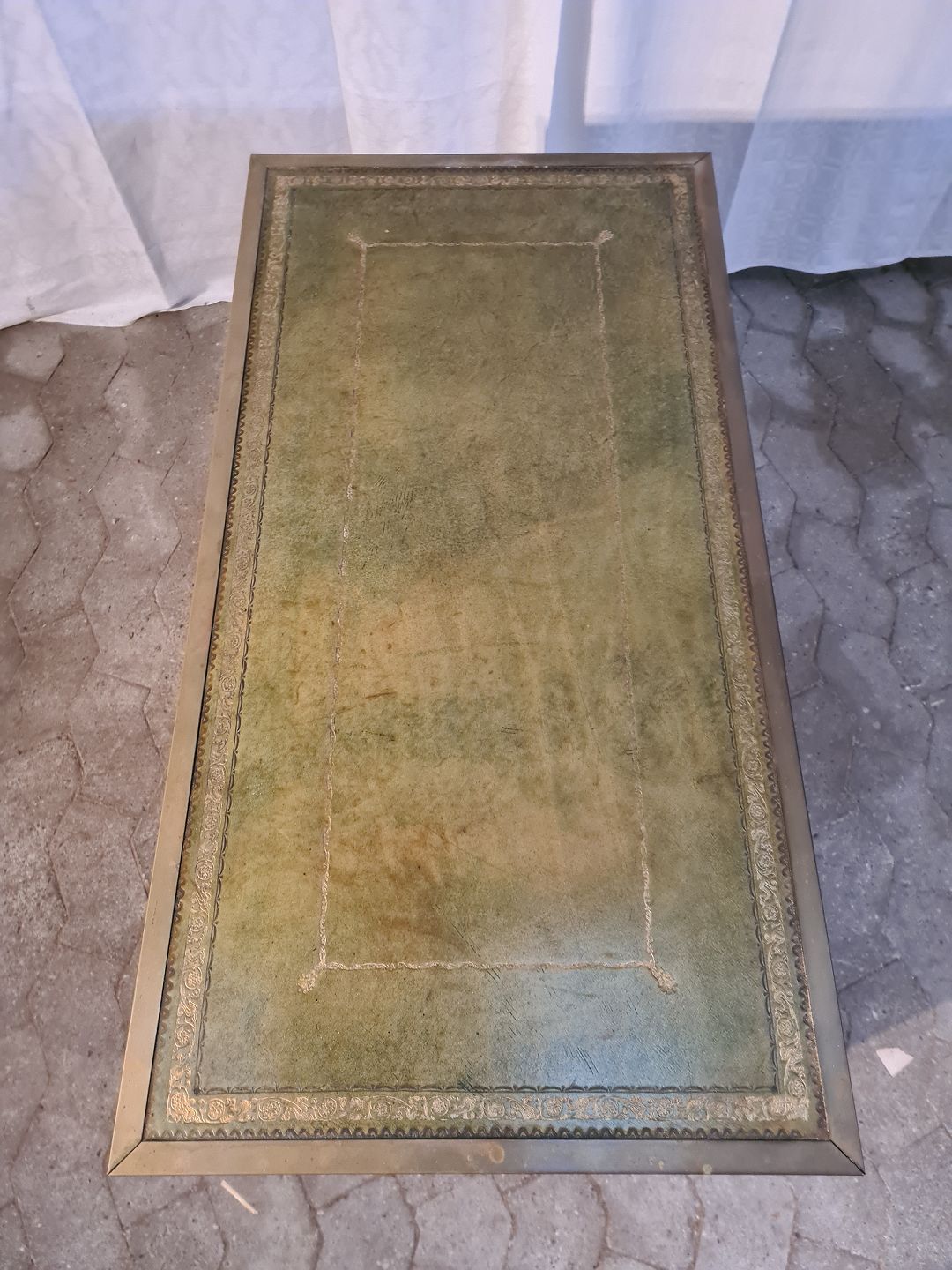 Kommode i fineret mahogni med kunstlæder indlæg, fra 1980erne.