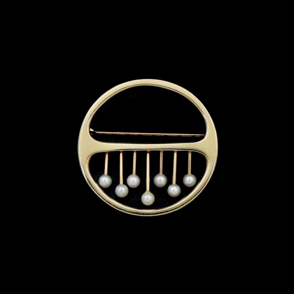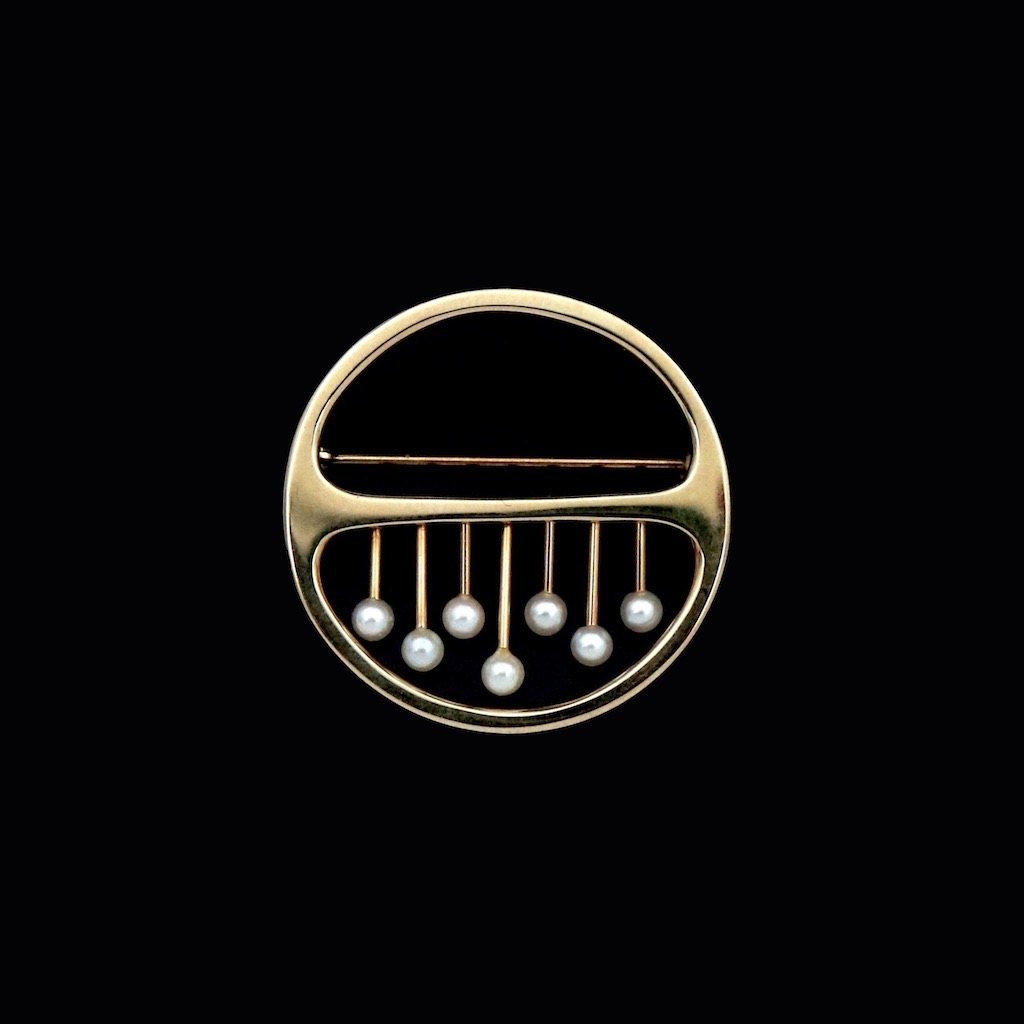 Bræmer-Jensen - Denmark. 14k Gold Brooch with Pearls.