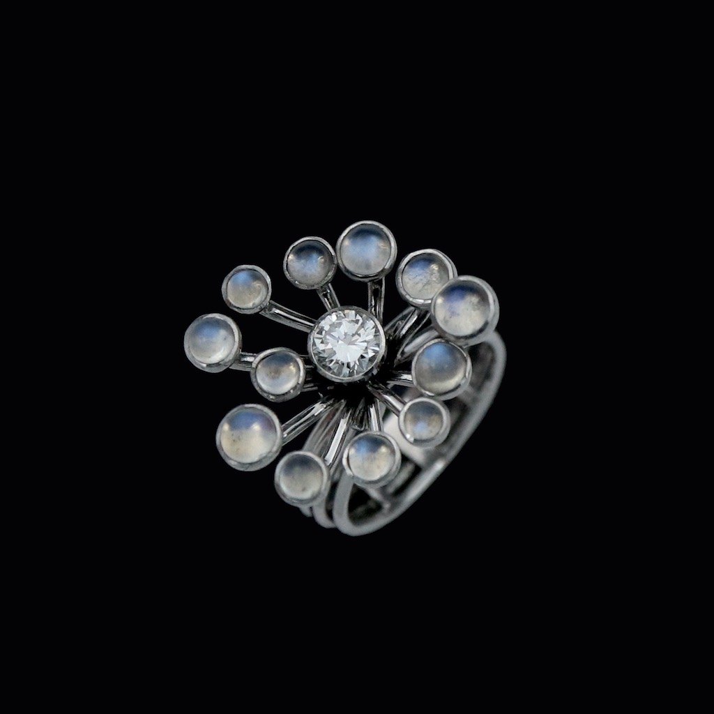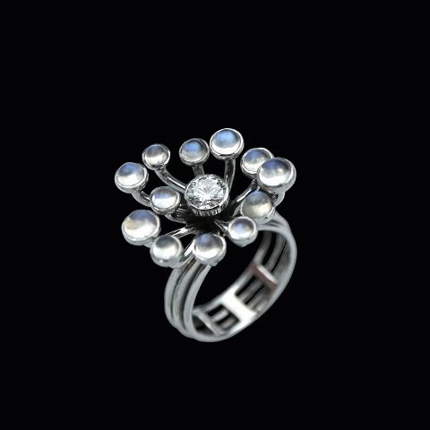 Vilhelm Holmstrup. 14k White Gold Ring Moonstones and Diamond 0.47ct.