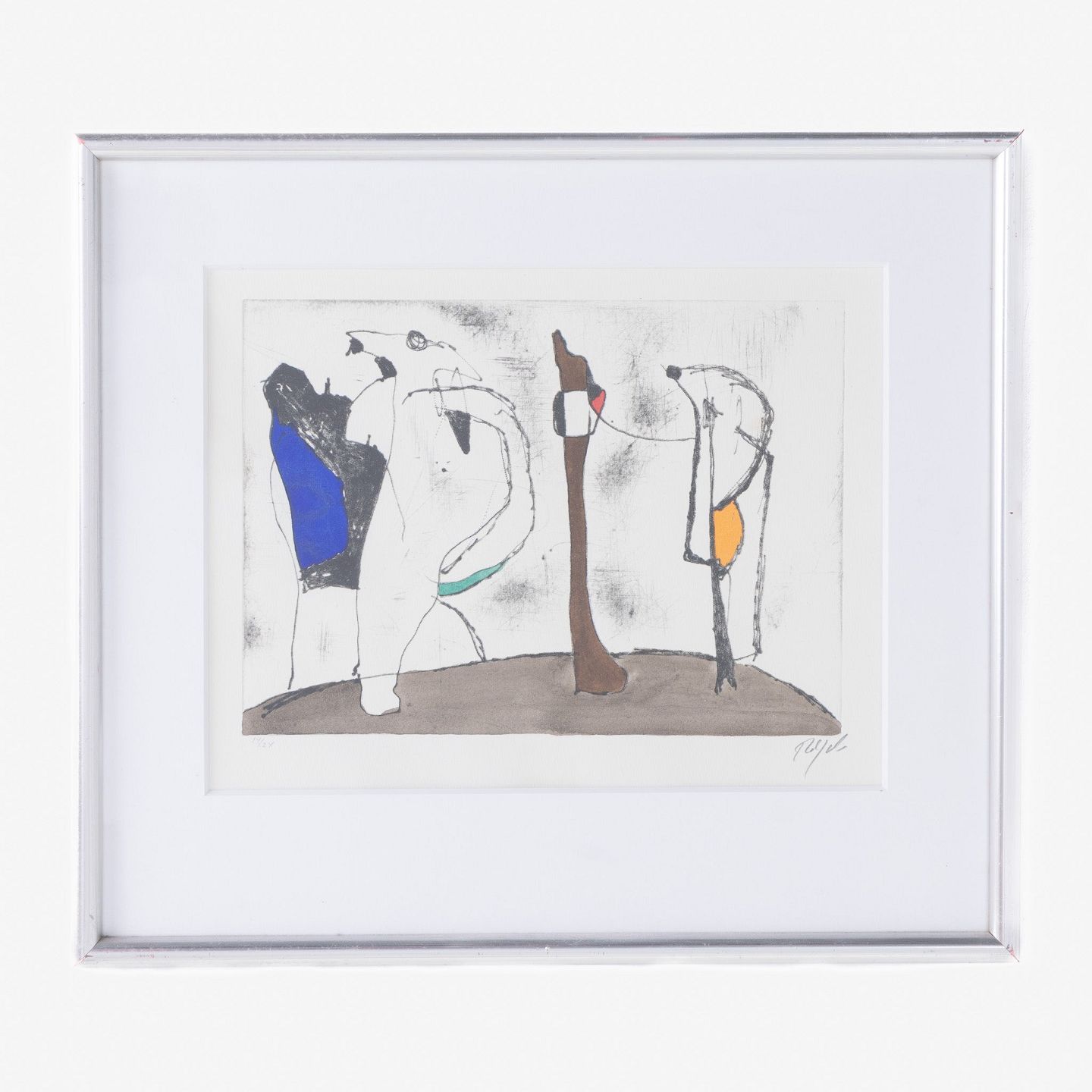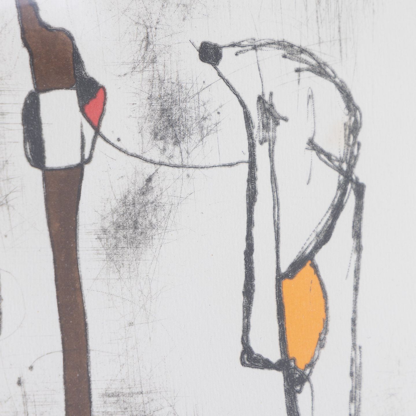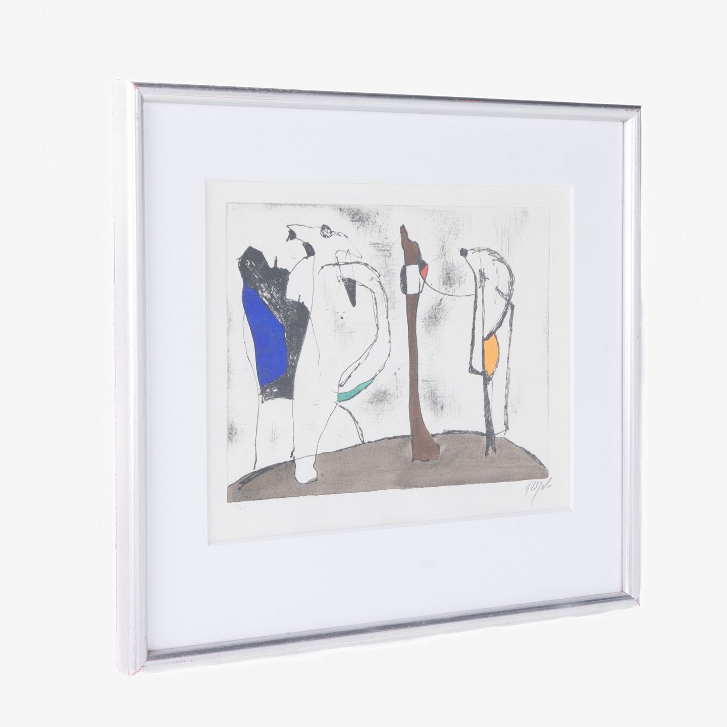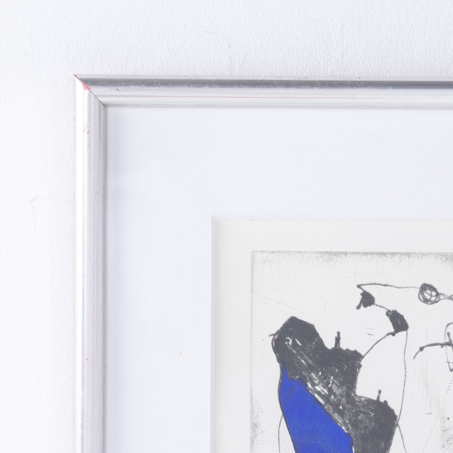 Hand-colored etching ring with passepartout in silver frame. Signed. 14/24.