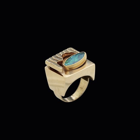 Frank Ahm. Danish 14k Gold Ring with Opal.