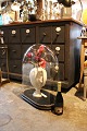Gigantic, large antique French hand-blown oval glass globe / glass dome on a black wooden base. H: 65cm. W: 57cm. D: 32.5cm.