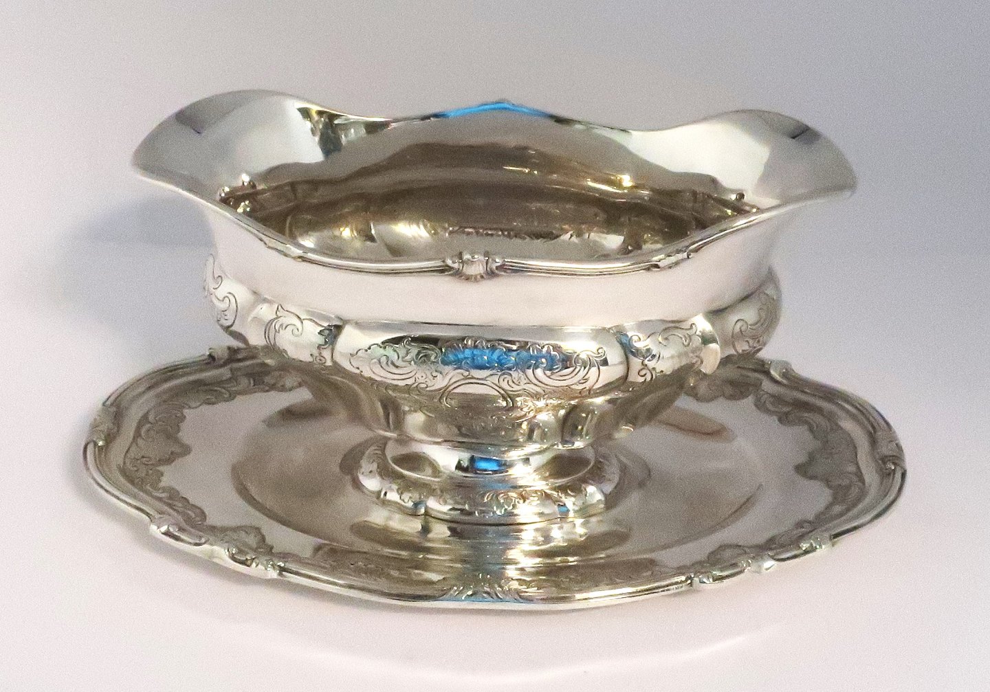 Michelsen. Sterling silver sauce bowl (925). Rosenborg. Length 23 cm. Produced 1931.