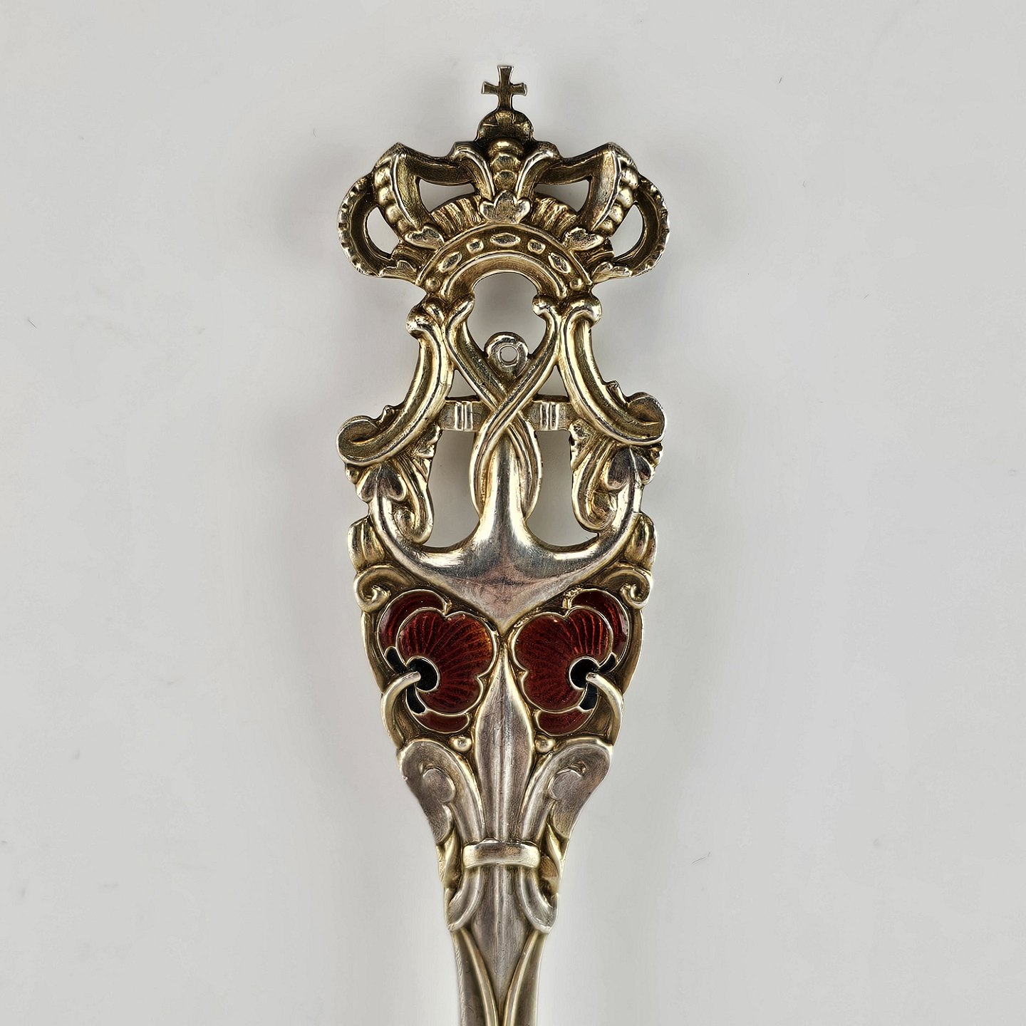 Mindeske fra år 1942 i delvist forgyldt sterling sølv med motiv af anker, krone og indlagt rød emalje dekoration