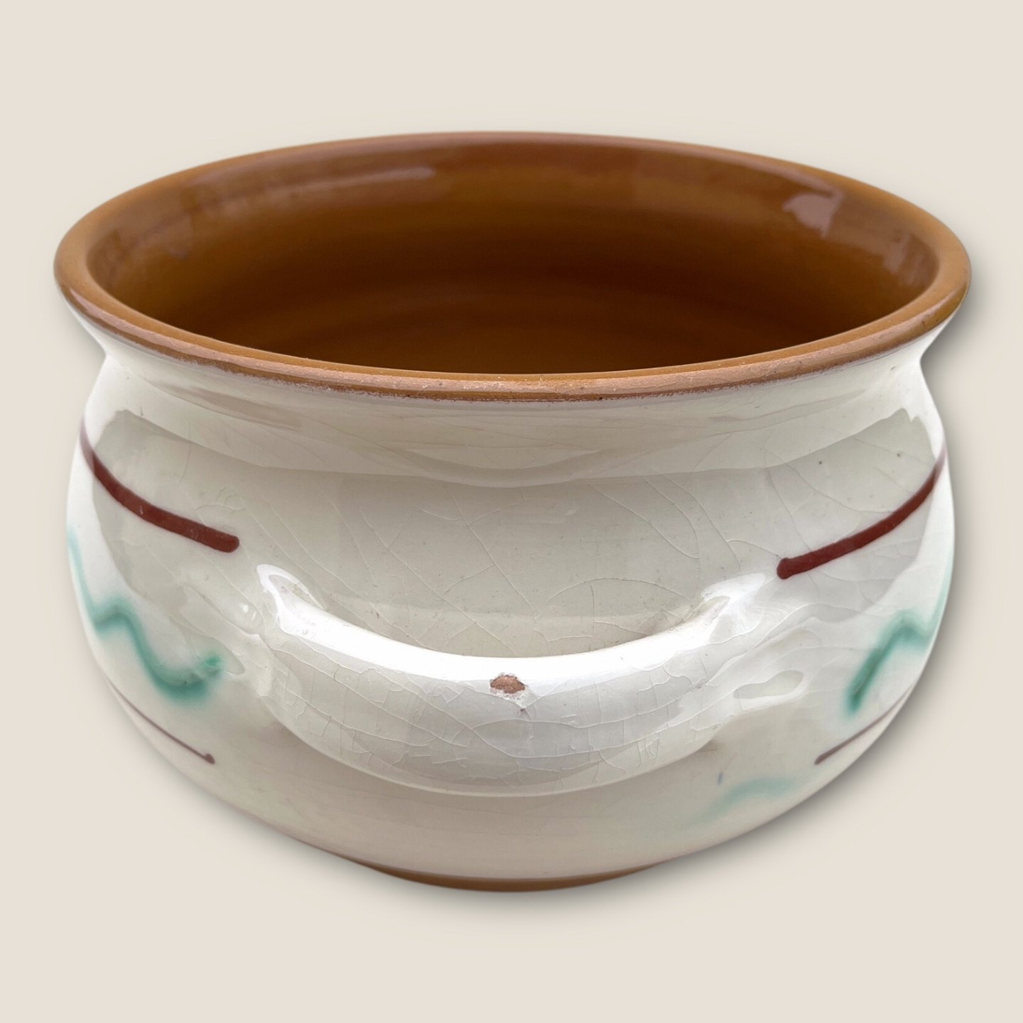 Præstø ceramics, Bowl with handle, 12cm high, 24cm in diameter *With small scratches*