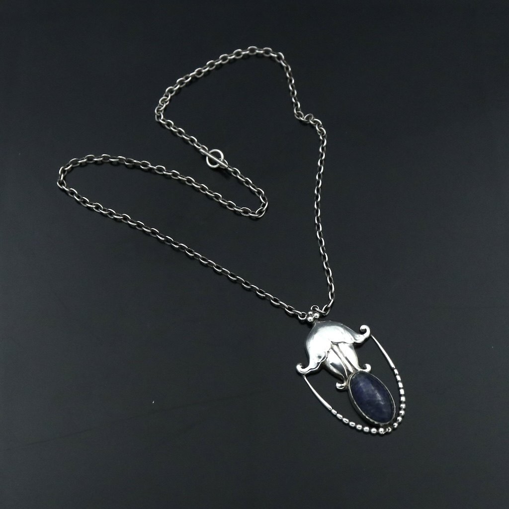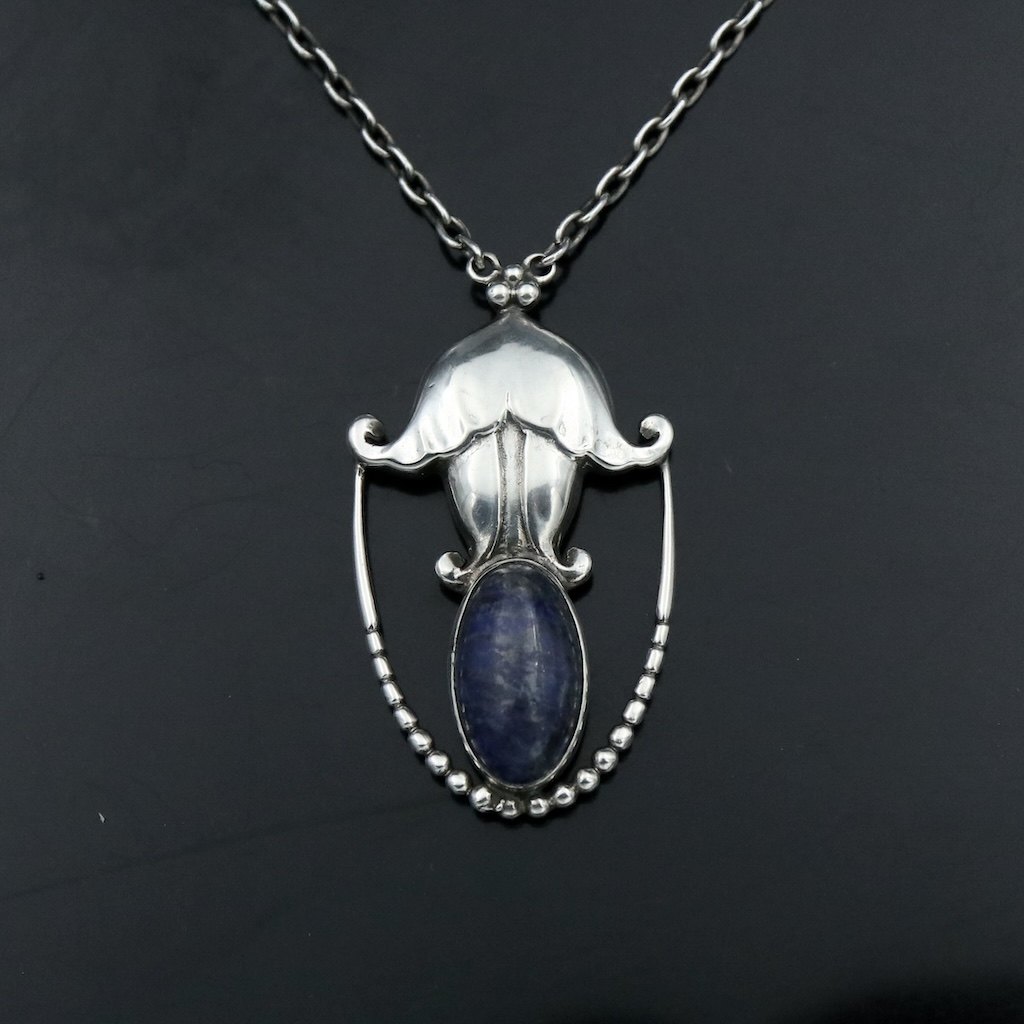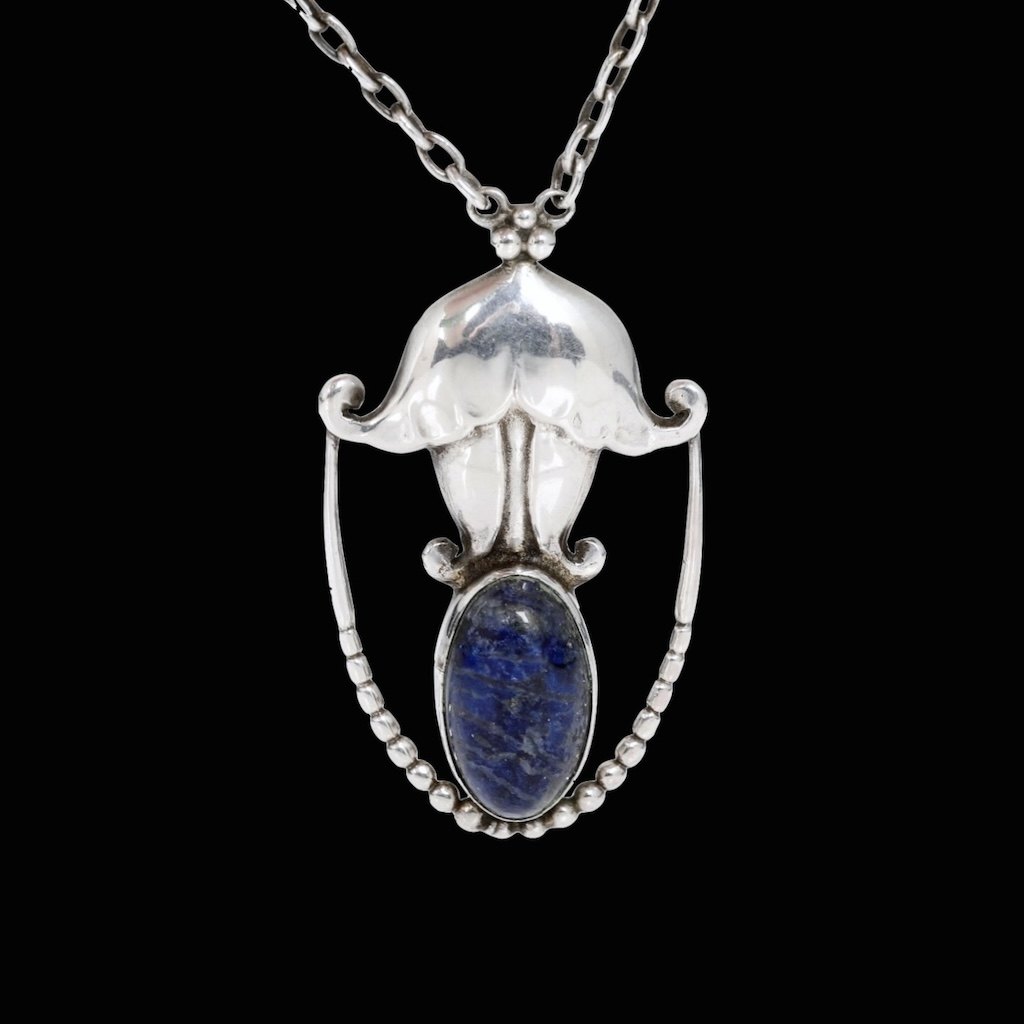 Georg Jensen. Silver Pendant #42 with Lapis Lazuli - 1915-27 Hallmarks.