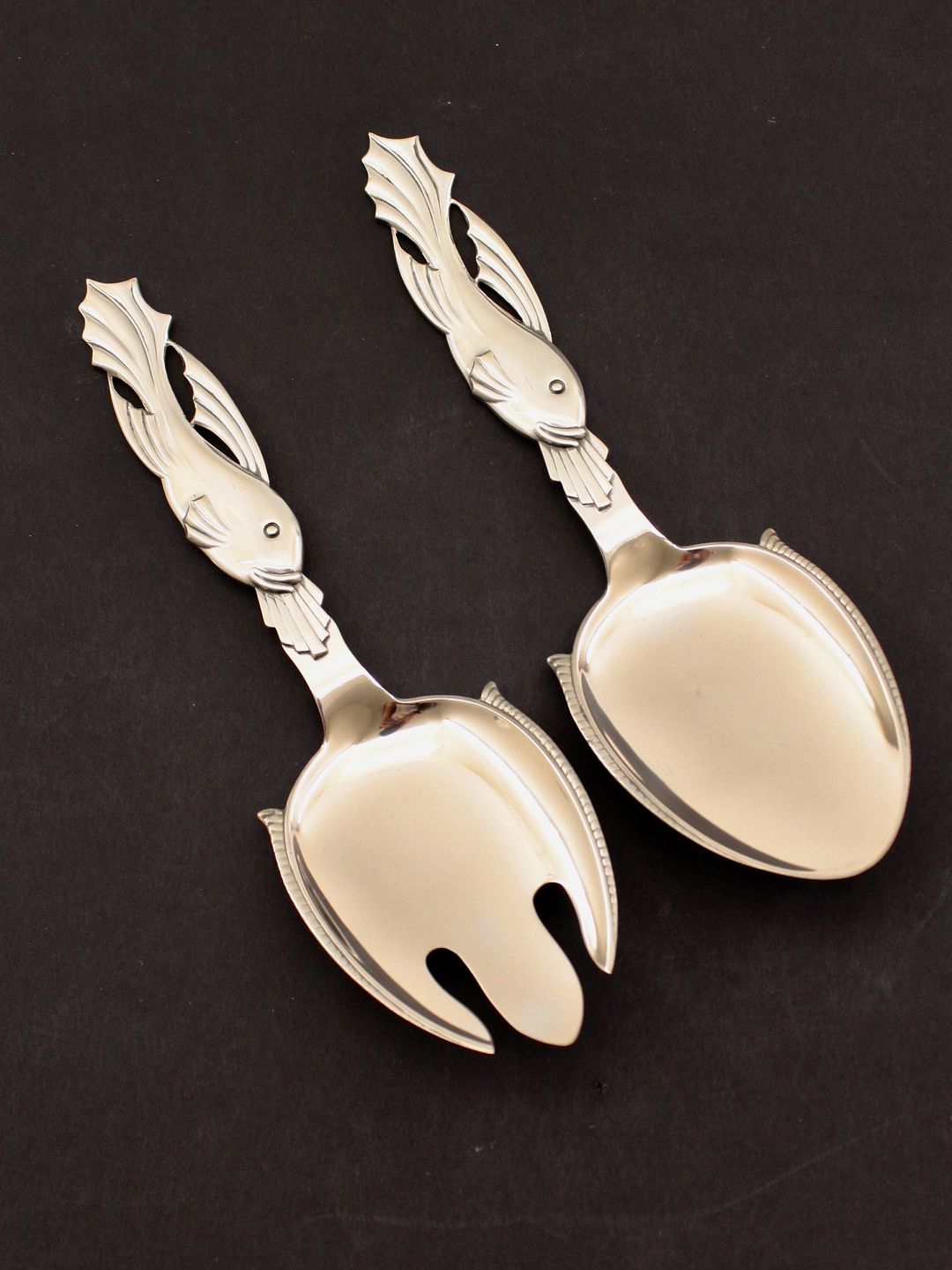 Tretårnet sølv håndsmedet fiske serverings set L. 22,5 cm. emne nr. 598146