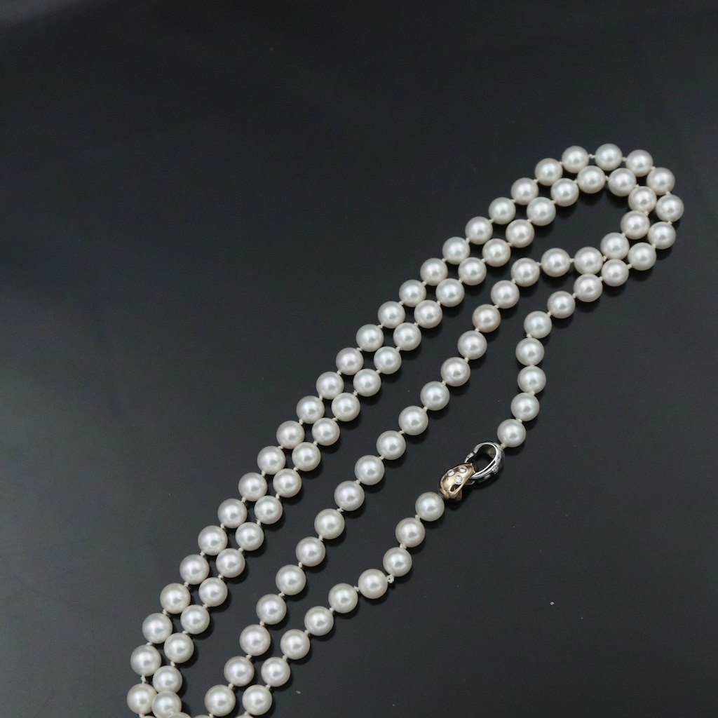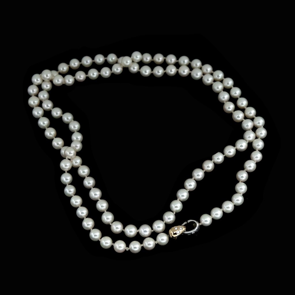 Georg Jensen. Unika Pearl Necklace with 18k White & Yellow Gold Diamond Clasp.