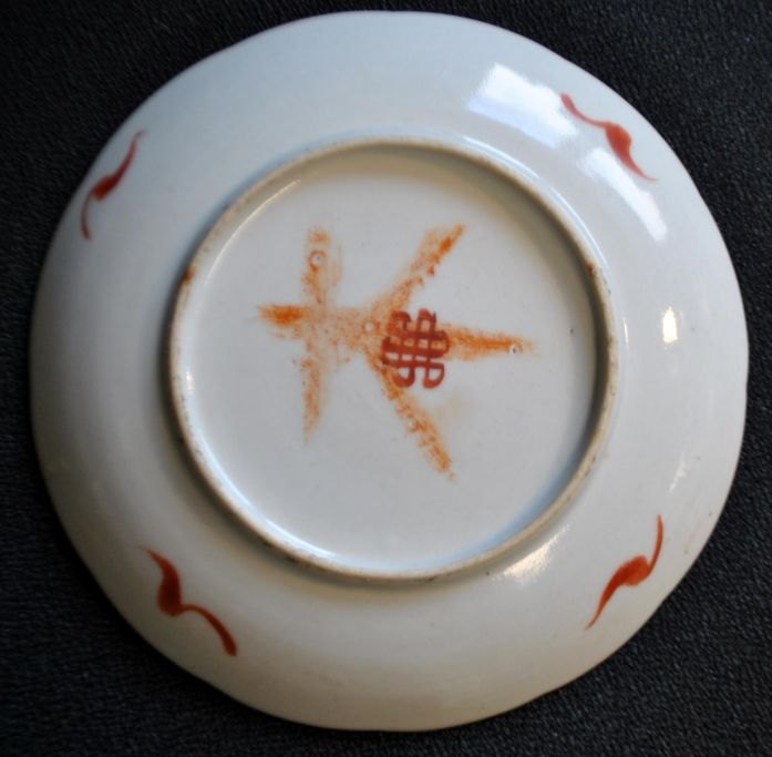 Chinese porcelain plate, polychron decorated, 19th century Motif with butterflies and flowers. Signed. Diameter: 16 cm.