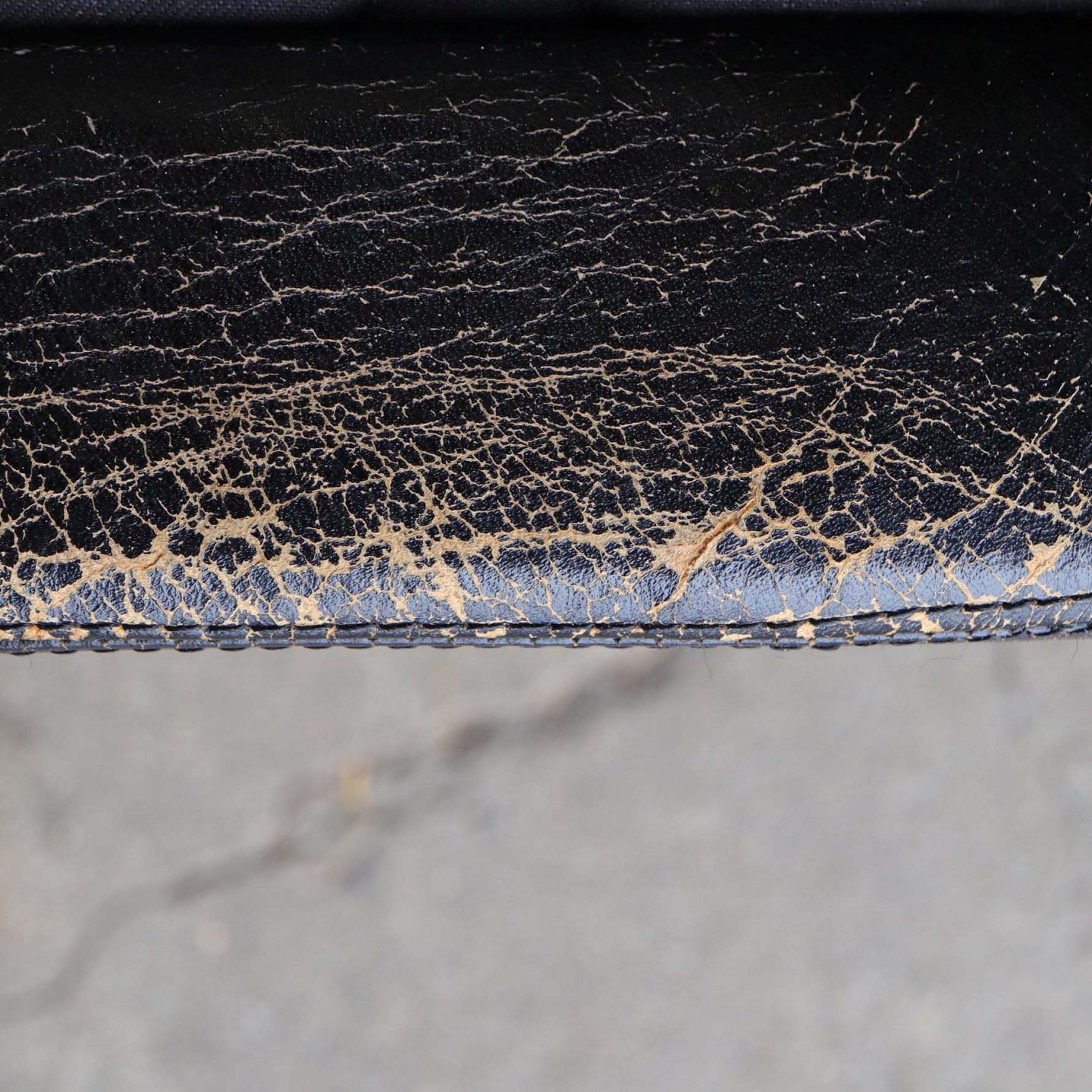 Fremstår med brugsspor på stel samt patineret og krakkeleret læder