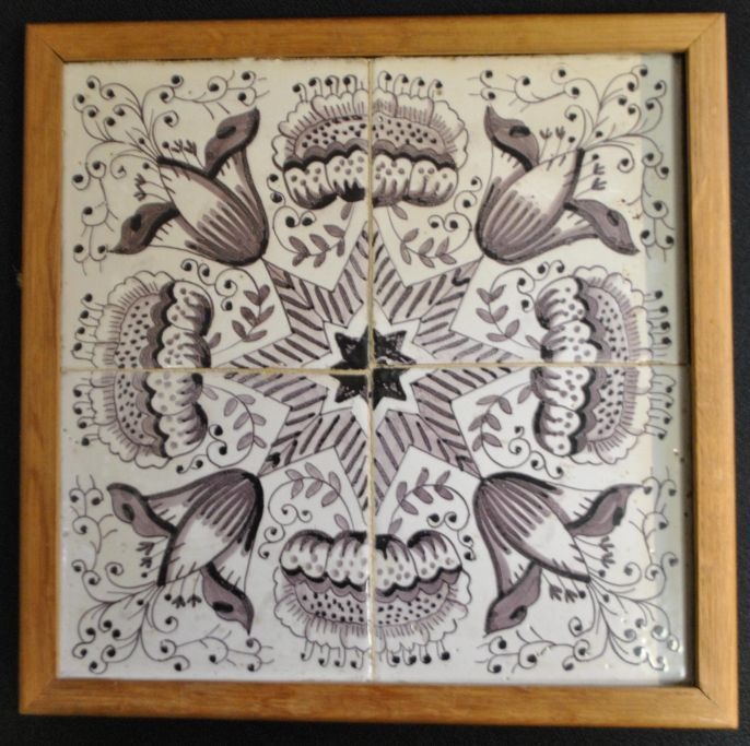 Firpas with Dutch tiles, middle part of the 18th century. Ornament tile. Manganese colored. 12.8 x 12.8 cm.
