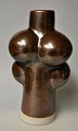 Poulsen, Tue (1939 - ) Danmark: Vase. Brunglaseret stentøj. Stemplet. H. 23 cm.
