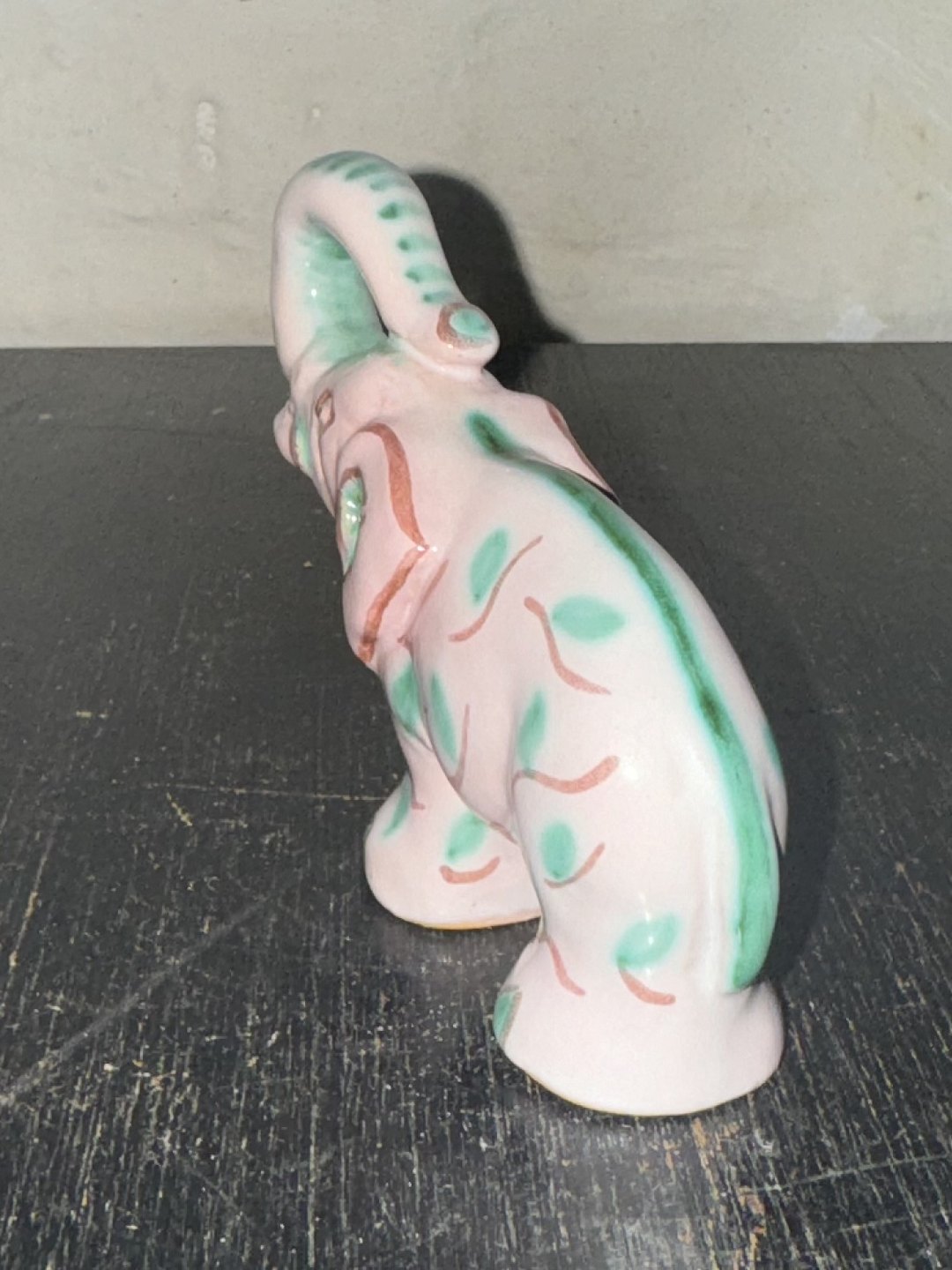 Bemalet figur i keramik af elefant fra Lauritz Hjorth, Rønne, Bornholm. I perfekt stand. Fabriksmærket. Mål: H. 8 cm L. 9,5 cm