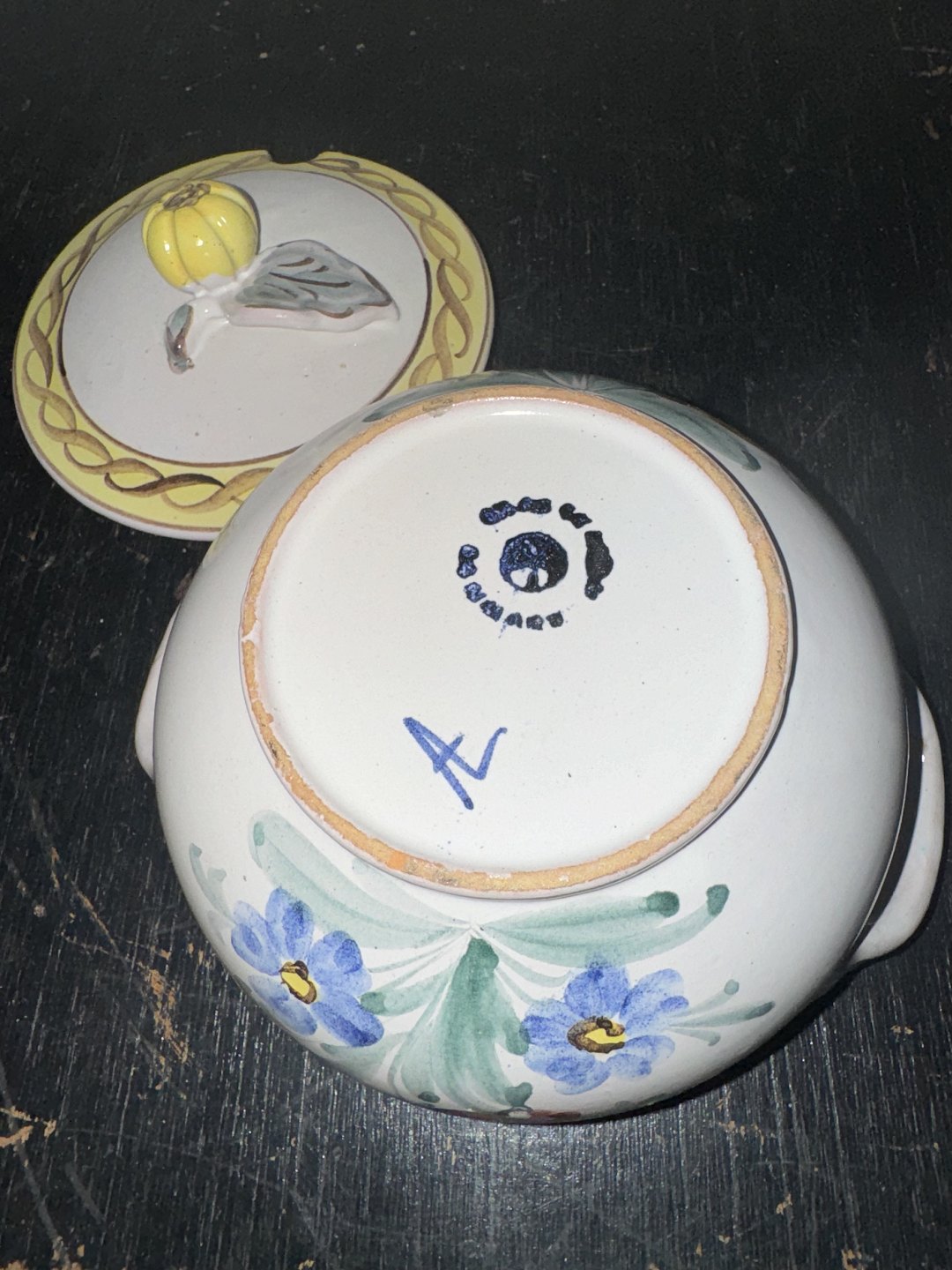 Blomsterbemalet keramik terrin med låg fra Lars Syberg. I perfekt stand. Fabriksmærket på bunden. Mål: H. 12,5 cm Fra øre til øre 16 cm