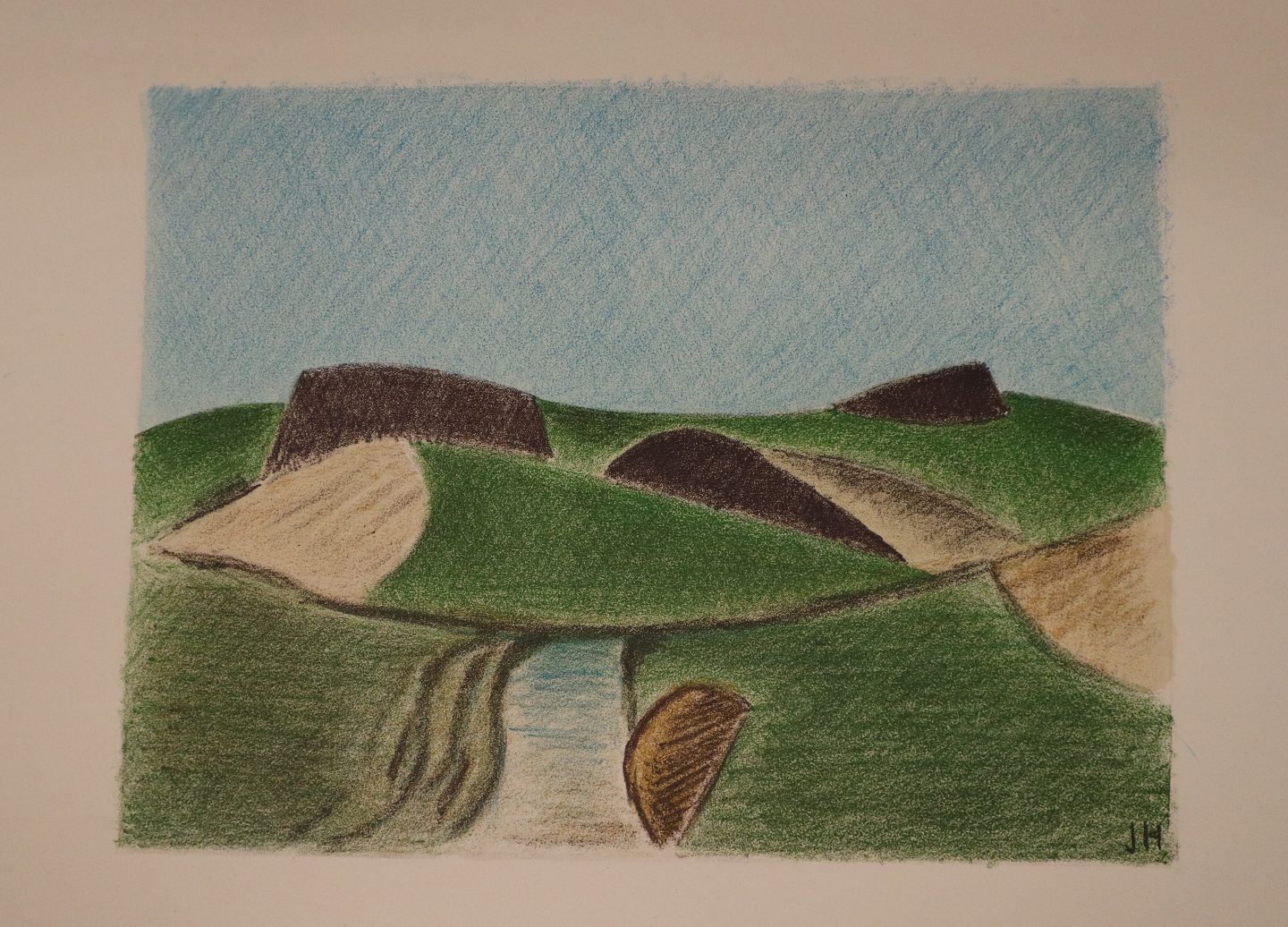 Lithographic print Johannes Hoffmeister Landscabe in green ca. 35.5 x 43.5 cm