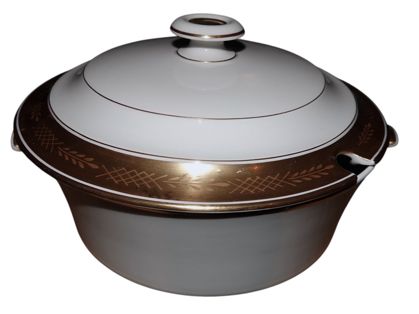 Royal Copenhagen Decoration 607 - white with gold edge on the same shape as Dagmar, soup tureen.