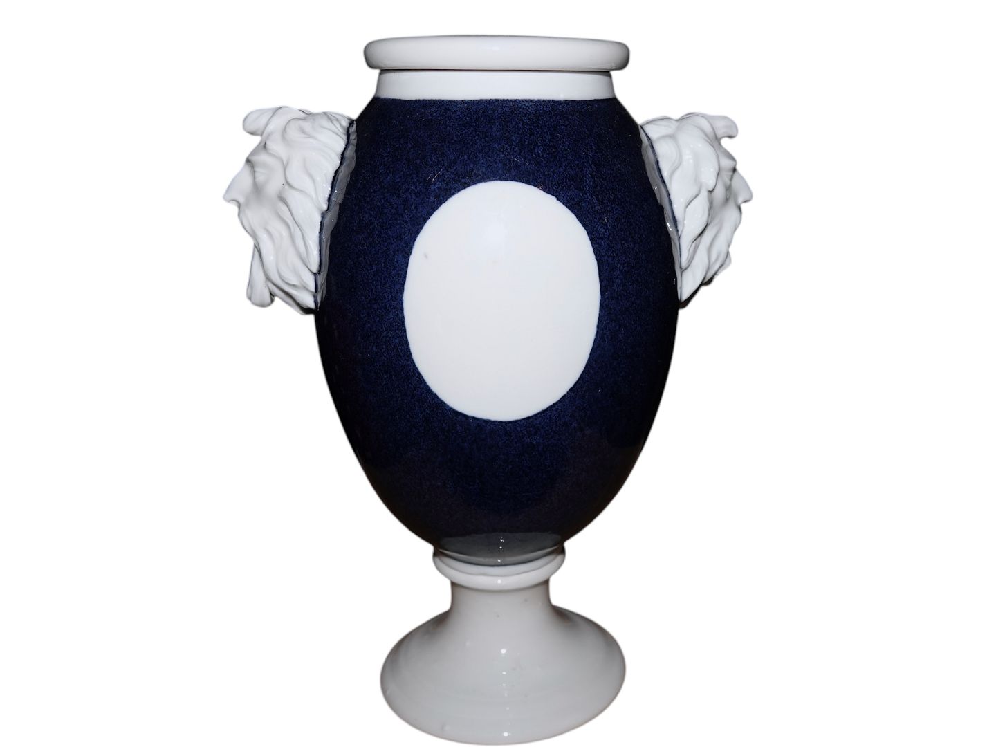 Stor og antik Bing & Grøndahl mørkeblå krukke med låg.