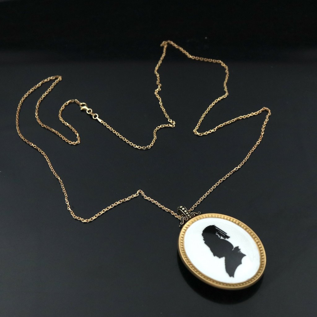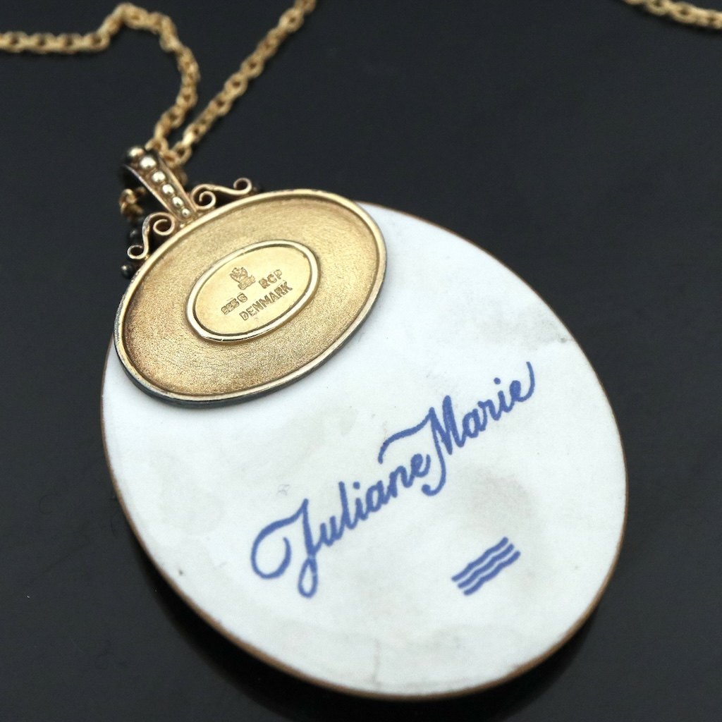 Royal Copenhagen. Porcelain and Gilded Sterling Silver Pendant - Juliane Marie.
