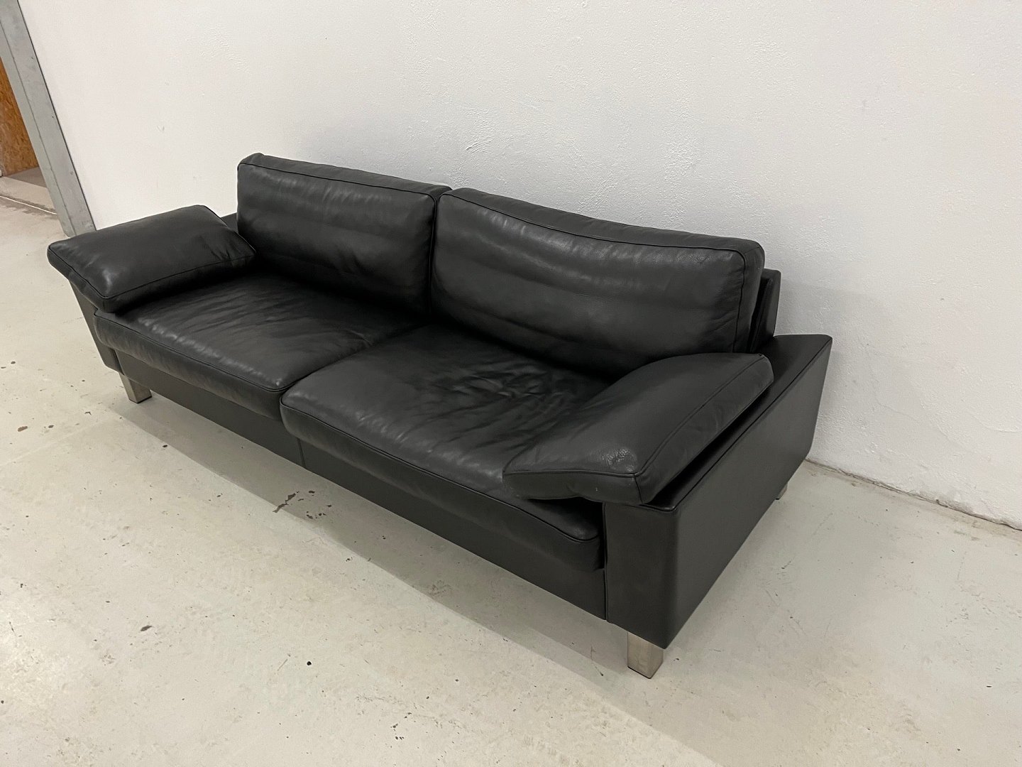 Mogens Hansen MH995 3 Pers.Sofa i sort prestige læder og med ben i børstet stål.Nypris 38.999,-