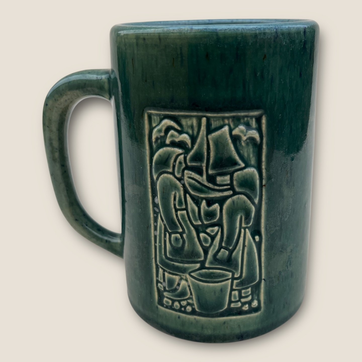 Bornholm ceramics, Michael Andersen, Green glazed mug, 12cm high, 8cm in diameter *Good condition*