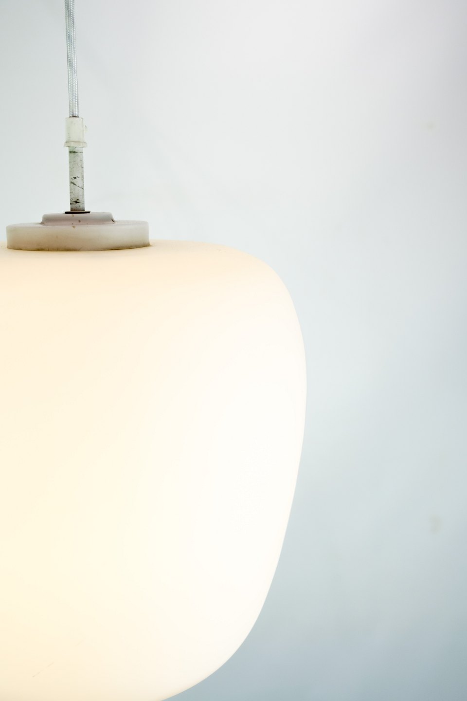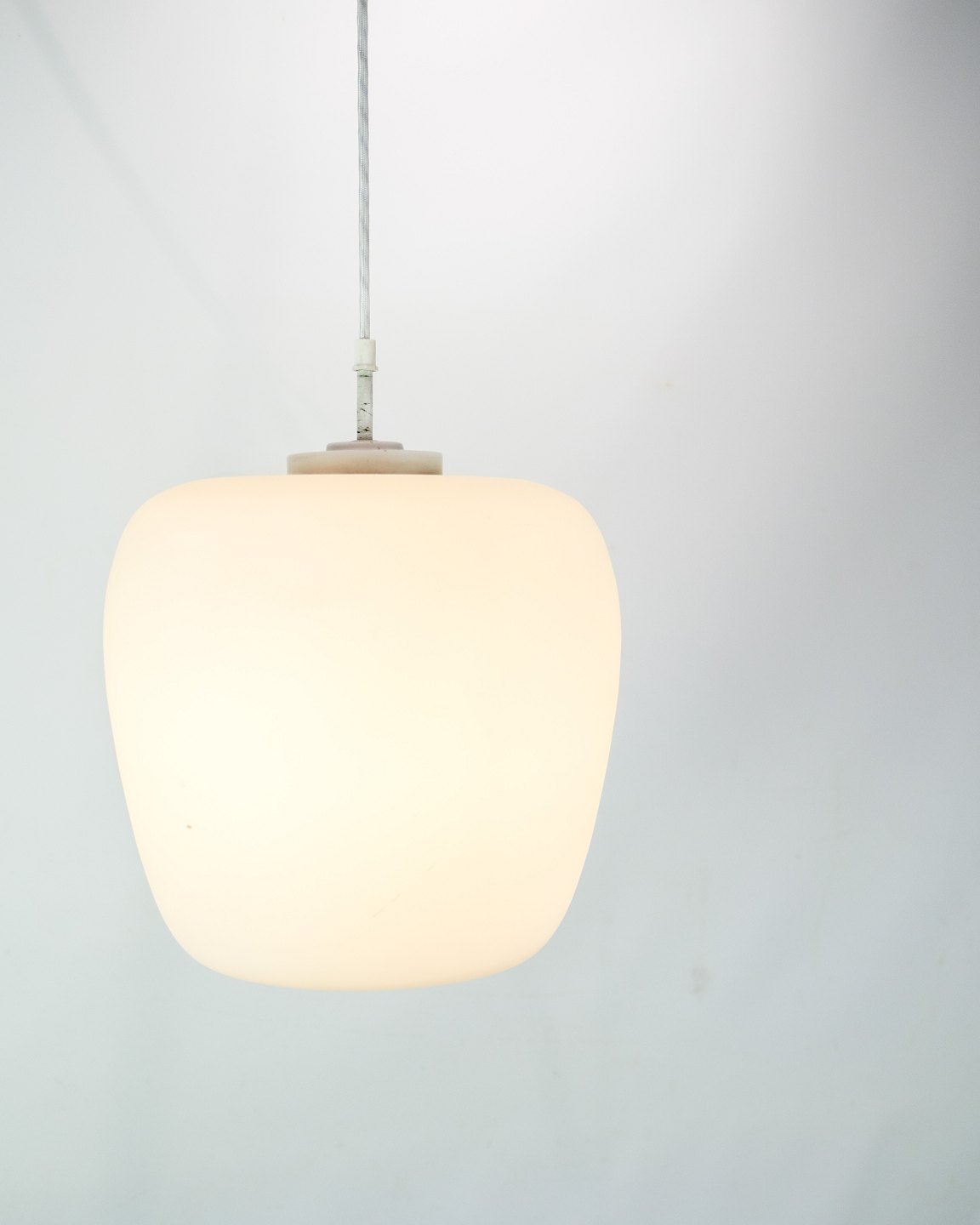 set of two pendant lamps from Fog & Mørup, made in classic Scandinavian design. The shades are made of elegant matt opal glass, which ensures a soft and pleasant light distribution without glare. The simple, organic shape gives the lamp a timeless and minimalist expression, perfect for both modern and classic interiors.