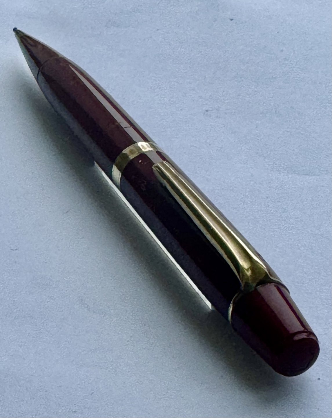 Bordeaux Montblanc no. 33 screw pencil. In good and functional condition. Engraved MONTBLANC and model number 33. Made in the 1950s. L. 13.2 cm