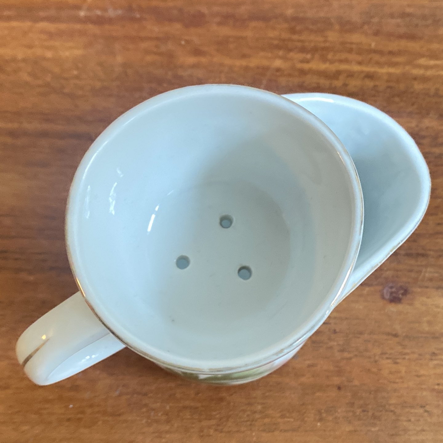 German porcelain shaving mug from the 1940s, decorated with bright red roses. Stamped "MADE IN GERMANY 34.22." Dimensions: 14 x 7.5 cm. H. 9.8 cm.