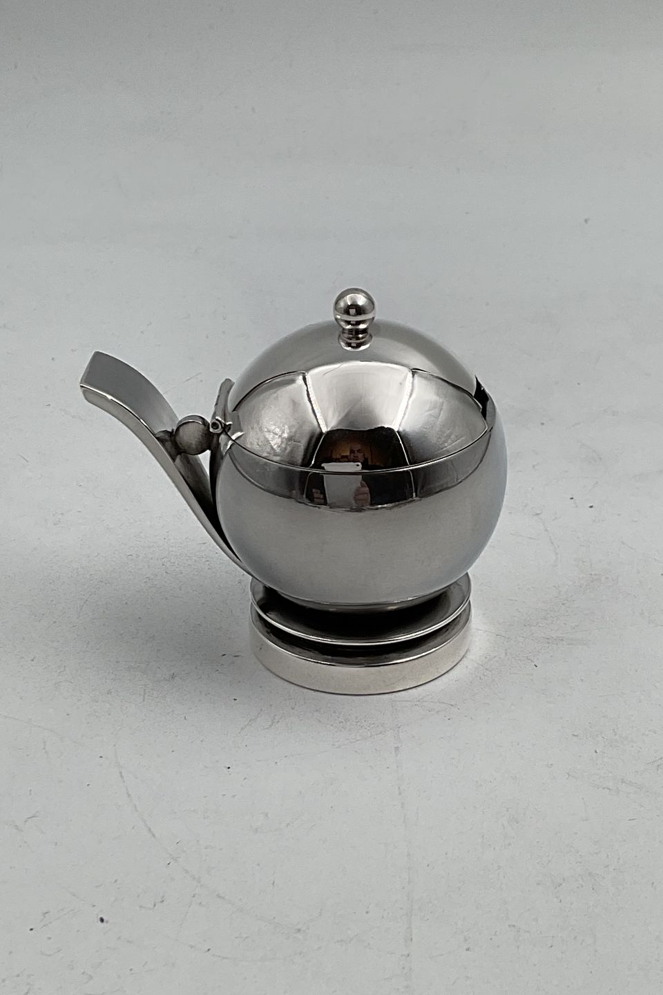 Georg Jensen Sterling Pyramid Sterling Silver mustard Jar with Green enamel No 632