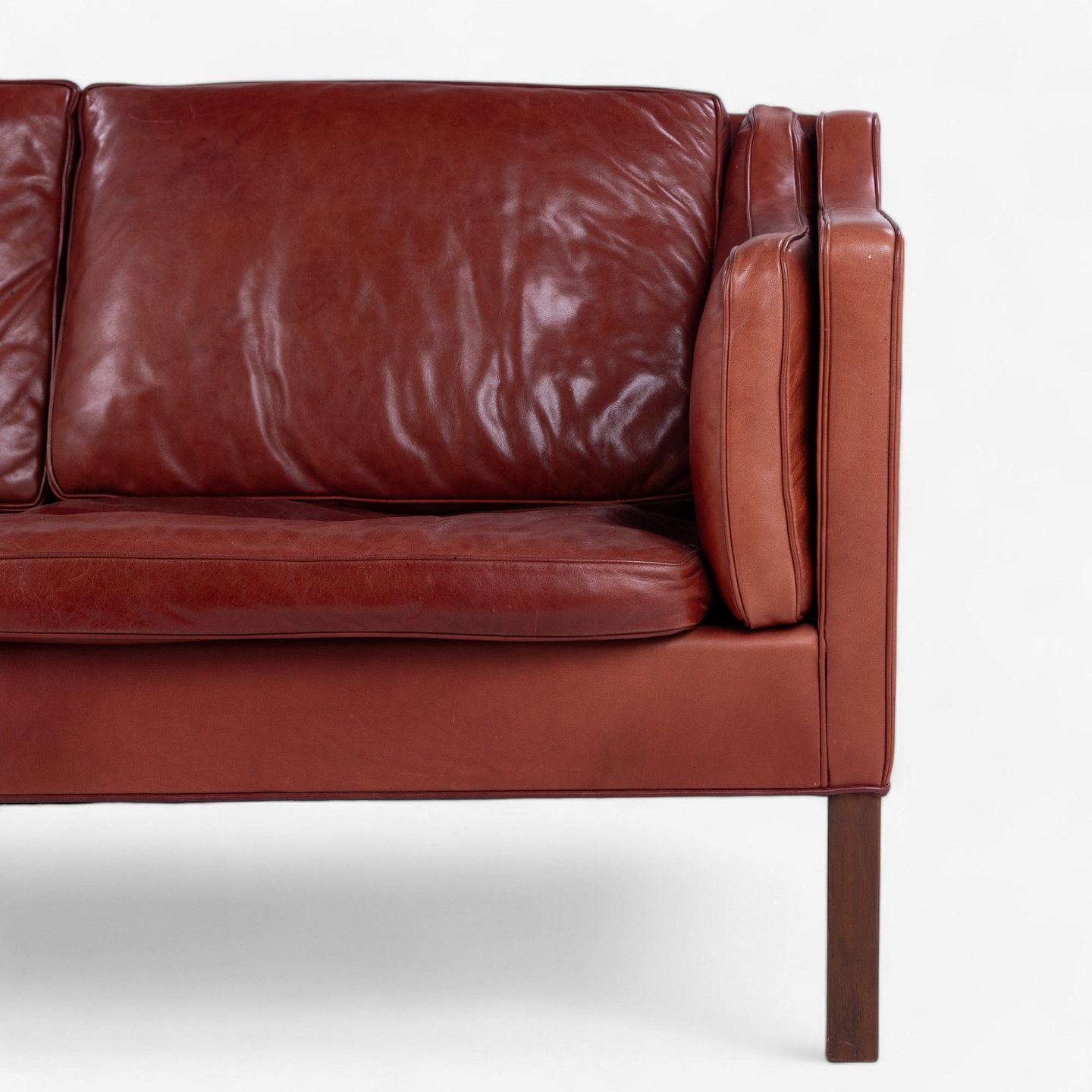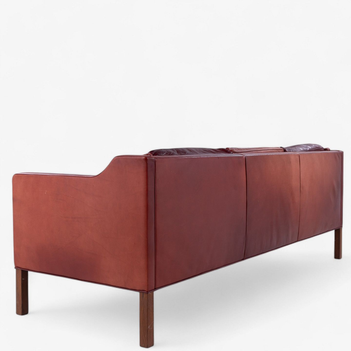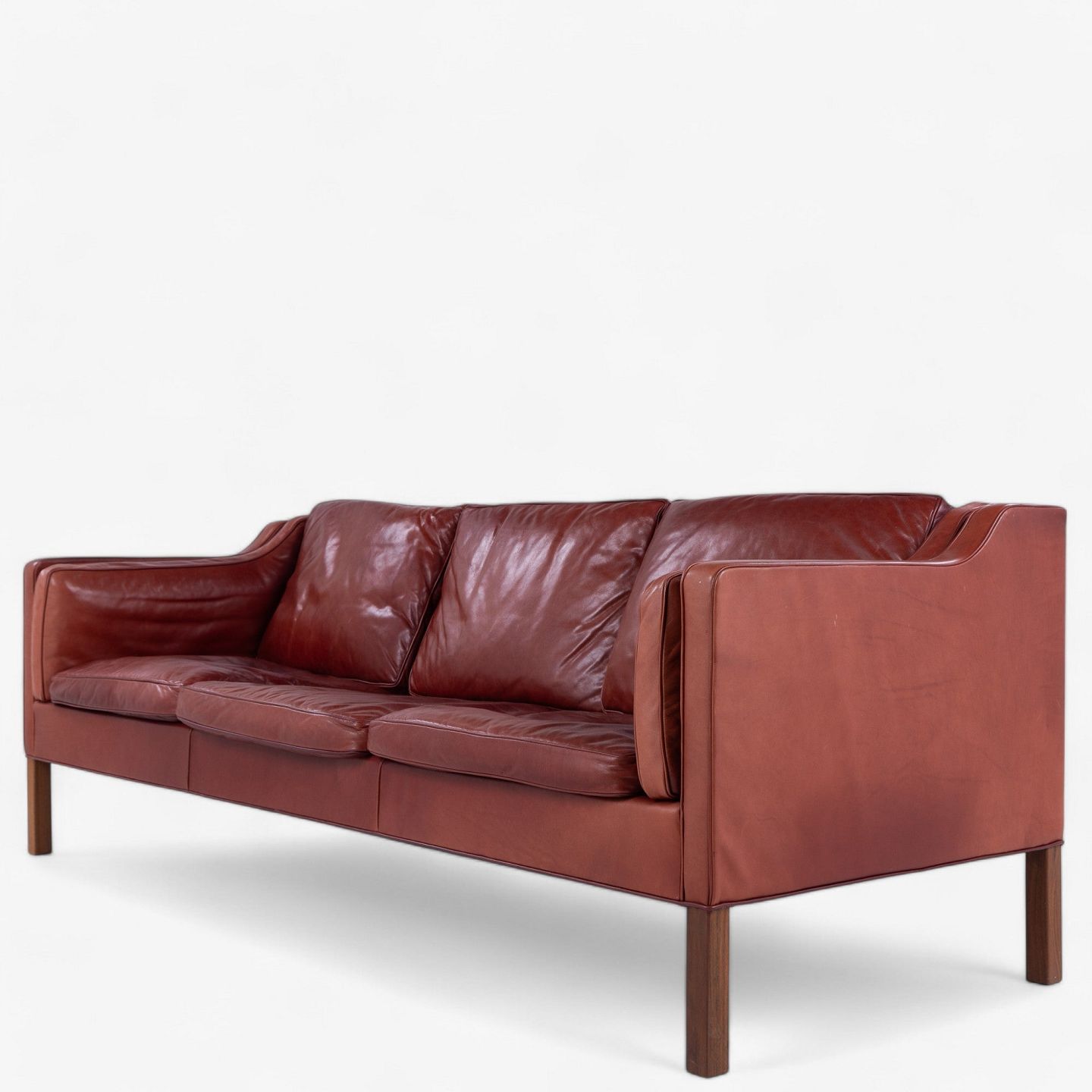 BM 2213 - 3 seater sofa in patinated 'Elegance' aniline leather (colour: Indian Red) with legs in teak.