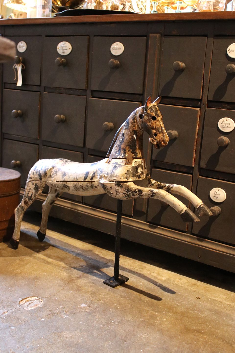 Decorative, French 19th century wooden horse with iron head and old paint with a really nice patina...