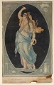 Indrammet bogtryk i malet træramme med motiv af den græske gudinde Melpomene, som står med hævet dolk i hånden.