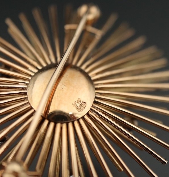 Viggo Wollny. 14k Gold Brooch with Diamonds. 13,4g.