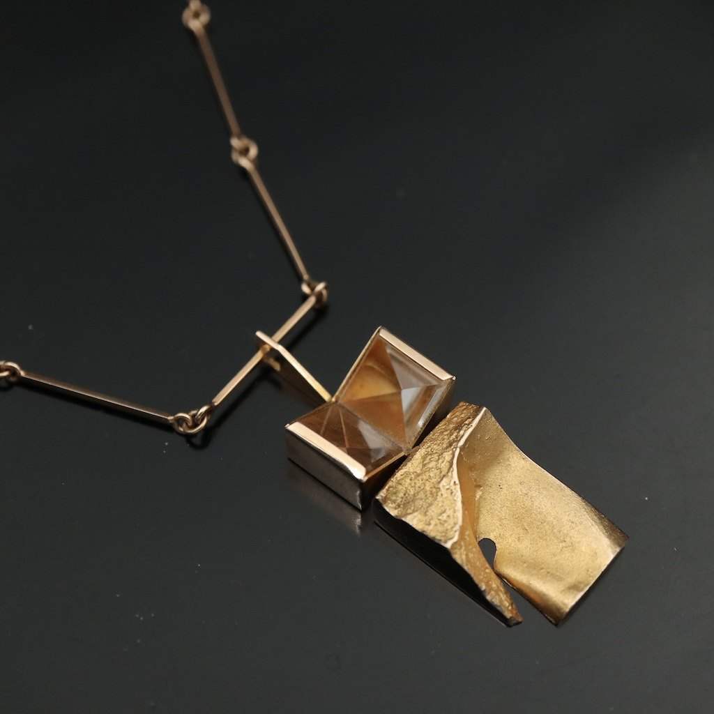 Lapponia. 14k Gold 'Narcissos' Necklace with Rock Crystal - Björn Weckström - 1969.