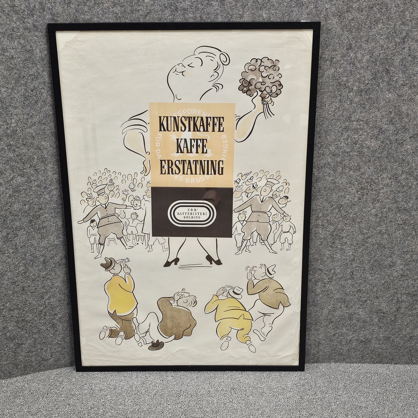Original reklameplakat for FDB kafferisteri Kolding, i nyere professionel udført sort ramme med glas.