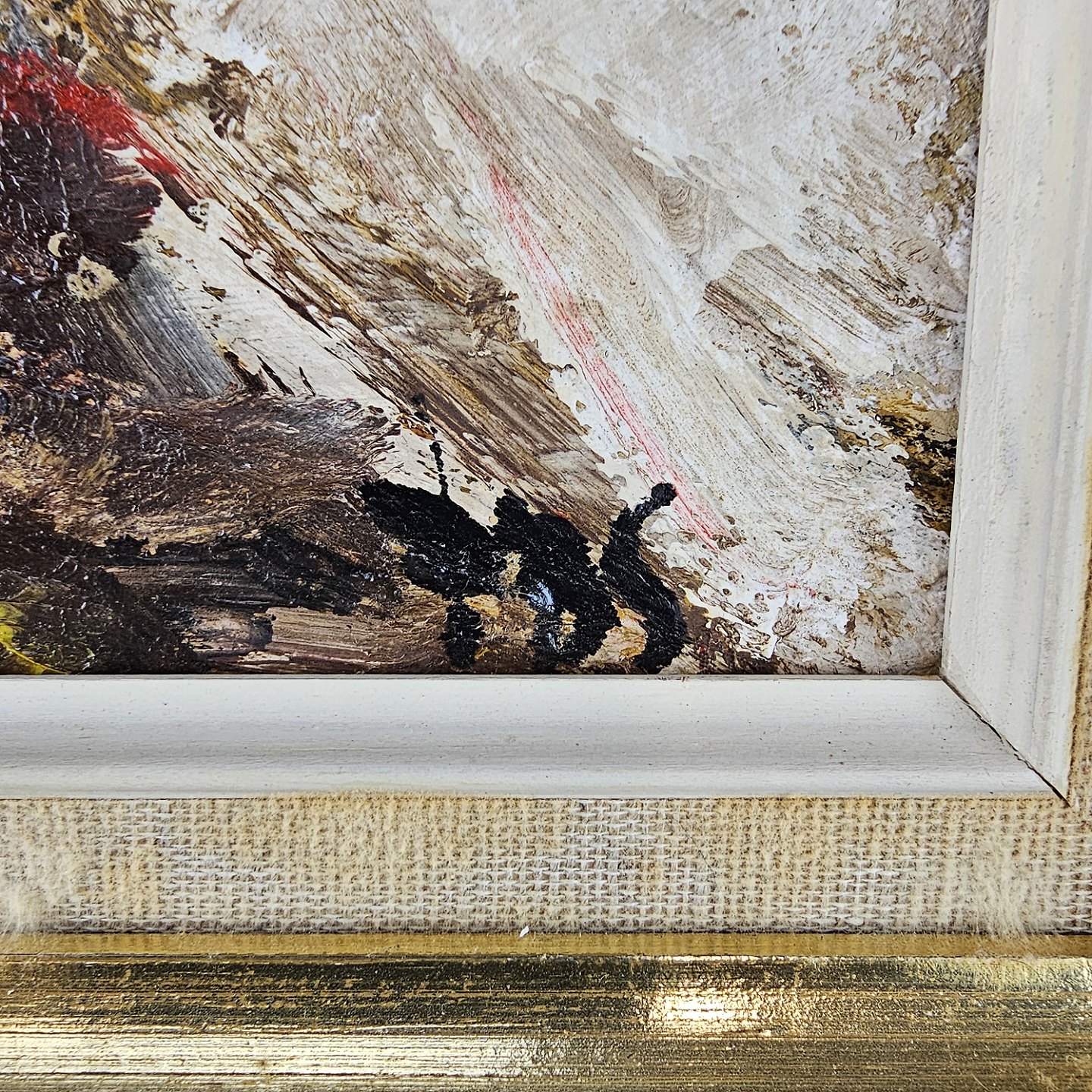 Maleriet er i bred guldramme.