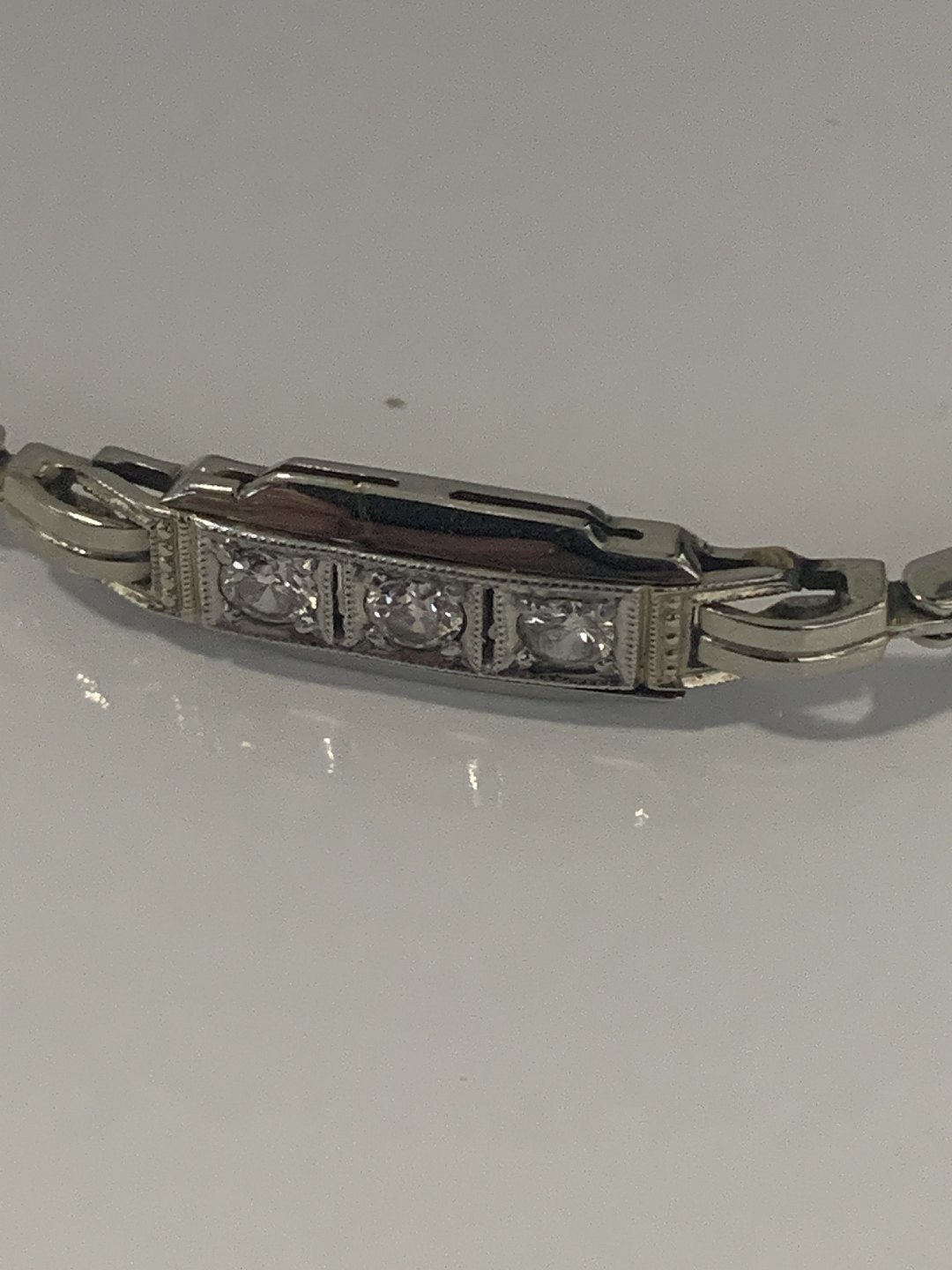 Smuk og tidløs armbånd i hvidguld med indlagt tre diamanter.