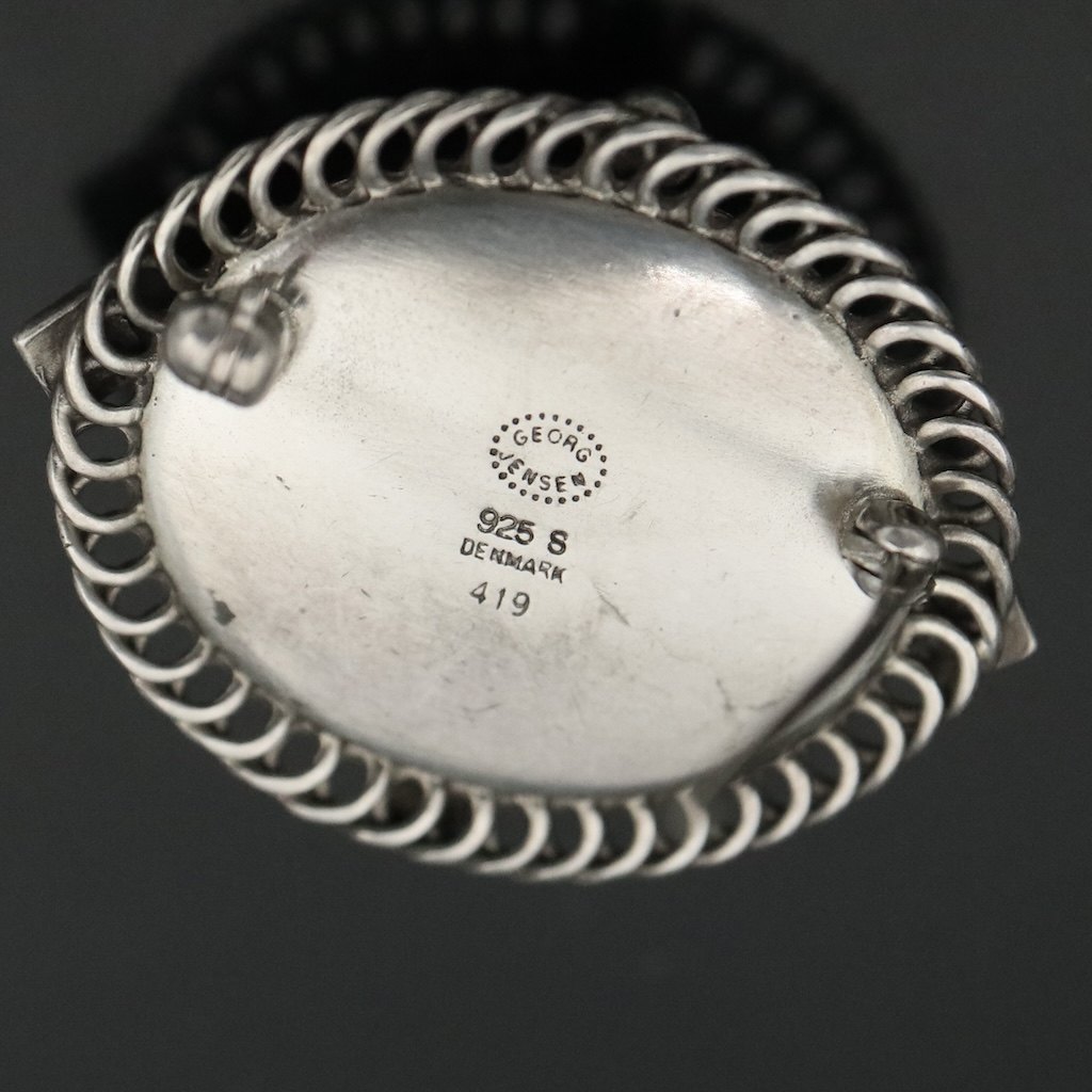 Georg Jensen. Sterling Silver Brooch with Cabochon Onyx #419.