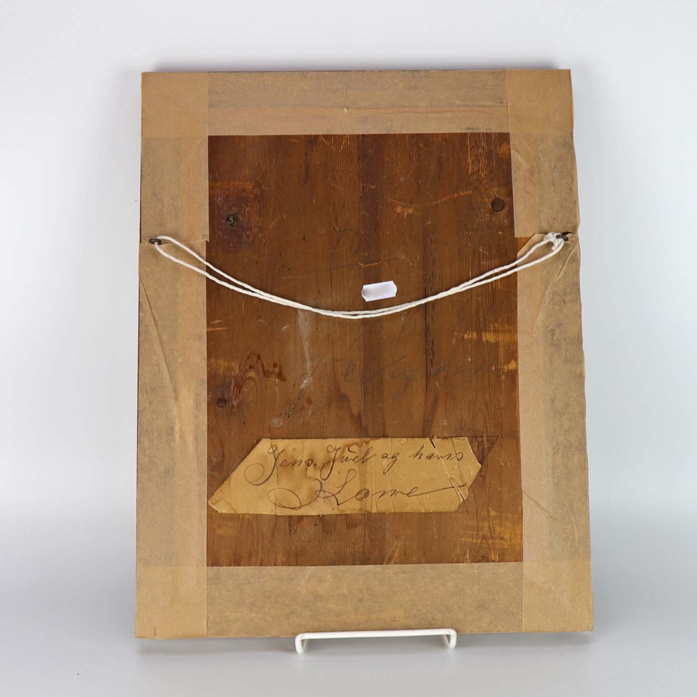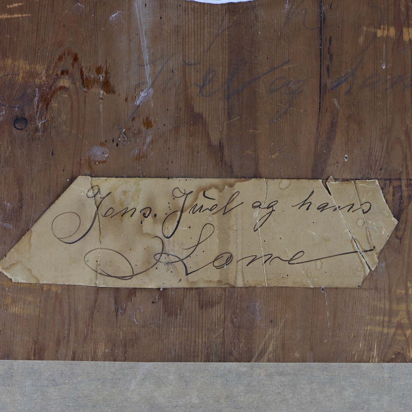 Indrammet kobberstik med passepartout i guldmalet træramme med motiv af den danske kunstmaler Jens Juel og hans kone ved staffeli