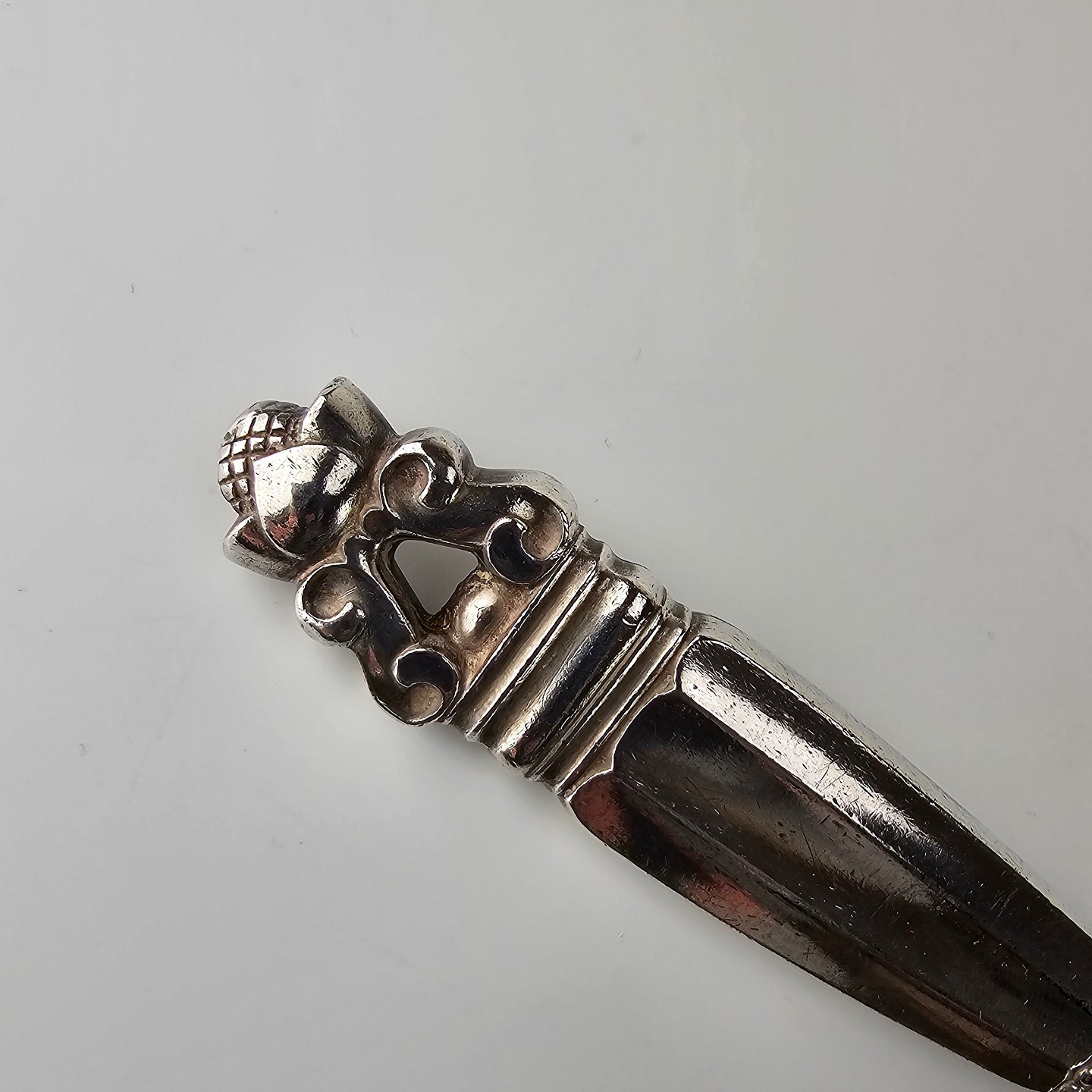 Kniv i sterlingsølv, med bestikmønsteret Konge fra Georg Jensen.