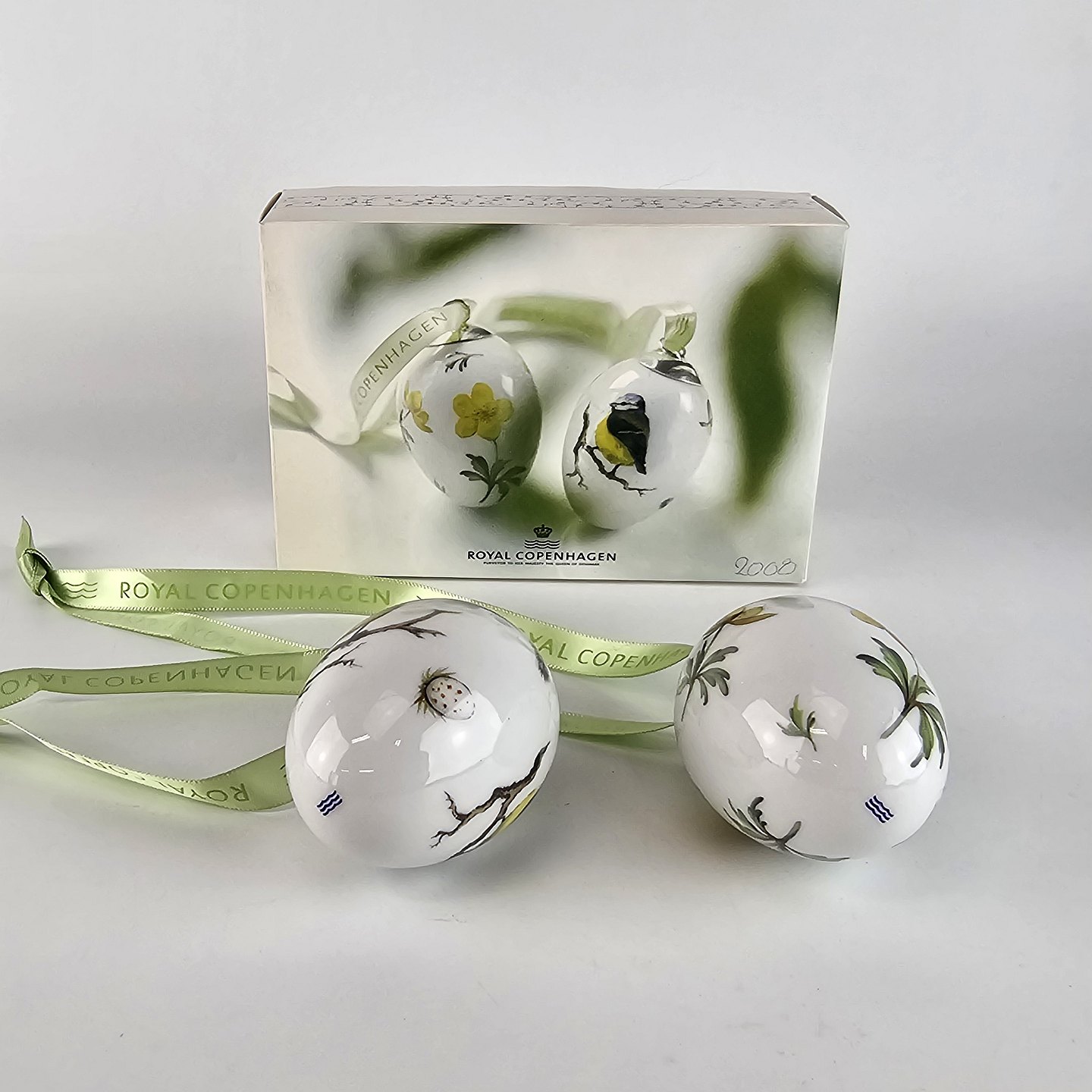 Æggene leveres med mintgrønt bånd og i original æske