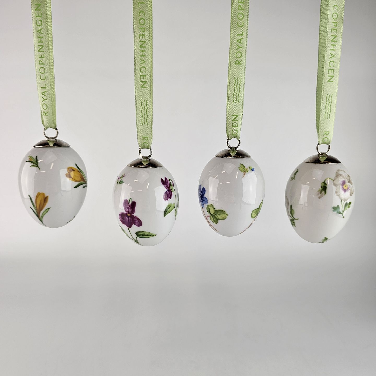 Påskeæg af kongelig porcelæn fra Forårskollektionen år 2007, med motiv af blå anemone, stedmoderblomst, viol og krokus.