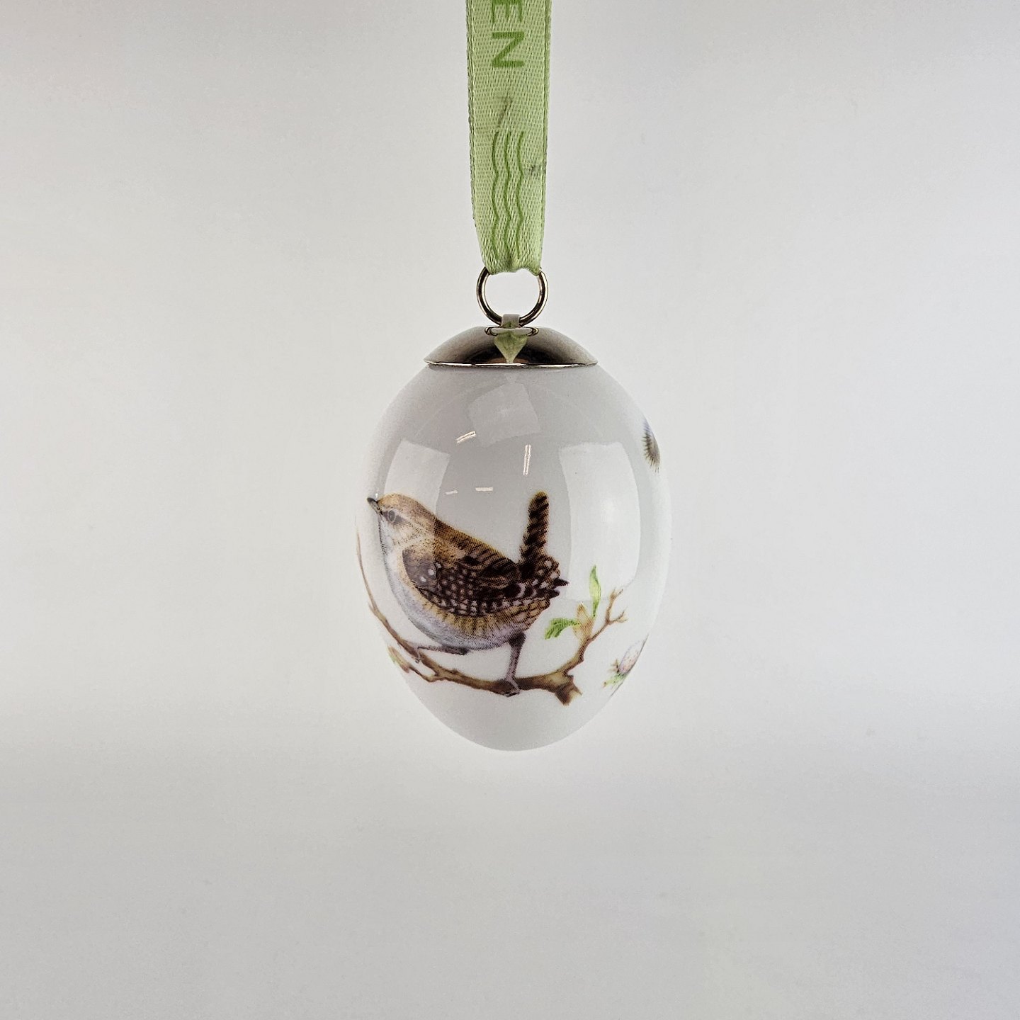 Påskeæg af kongelig porcelæn fra Forårskollektionen år 2010, med motiv af gærdesmutte.