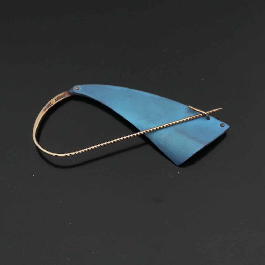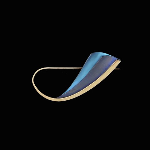Kirsten Pontoppidan. 18k Gold Brooch with Color-Oxidized Titanium.