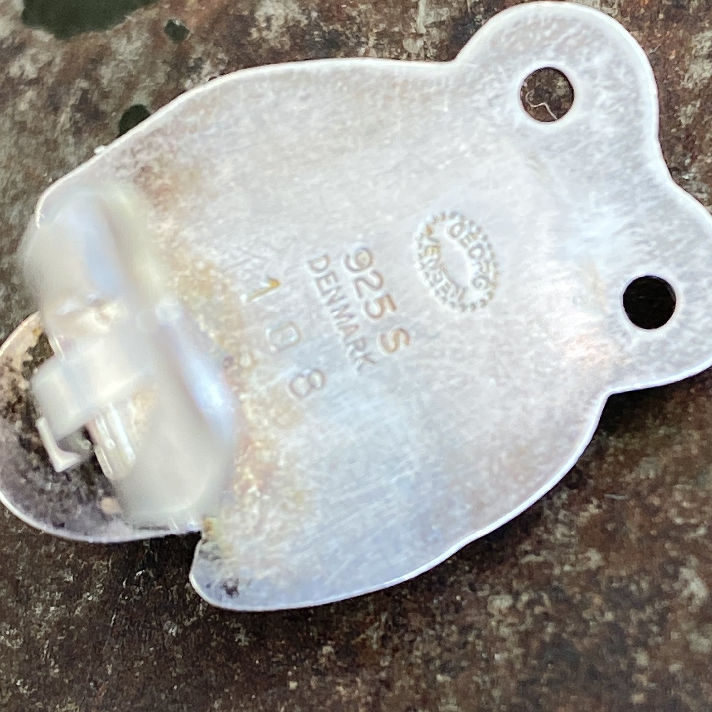A sincle moonlight blossom earclip in Sterling from George Jensen.( moonestone). Model No 108.